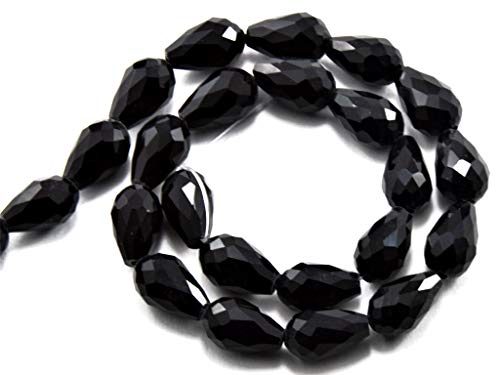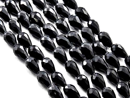 Black Transparent Drop/Briolette Crystal Bead (10 mm * 15 mm) (1 String) for Jewellery Making Beading Embroidery Art and Craft