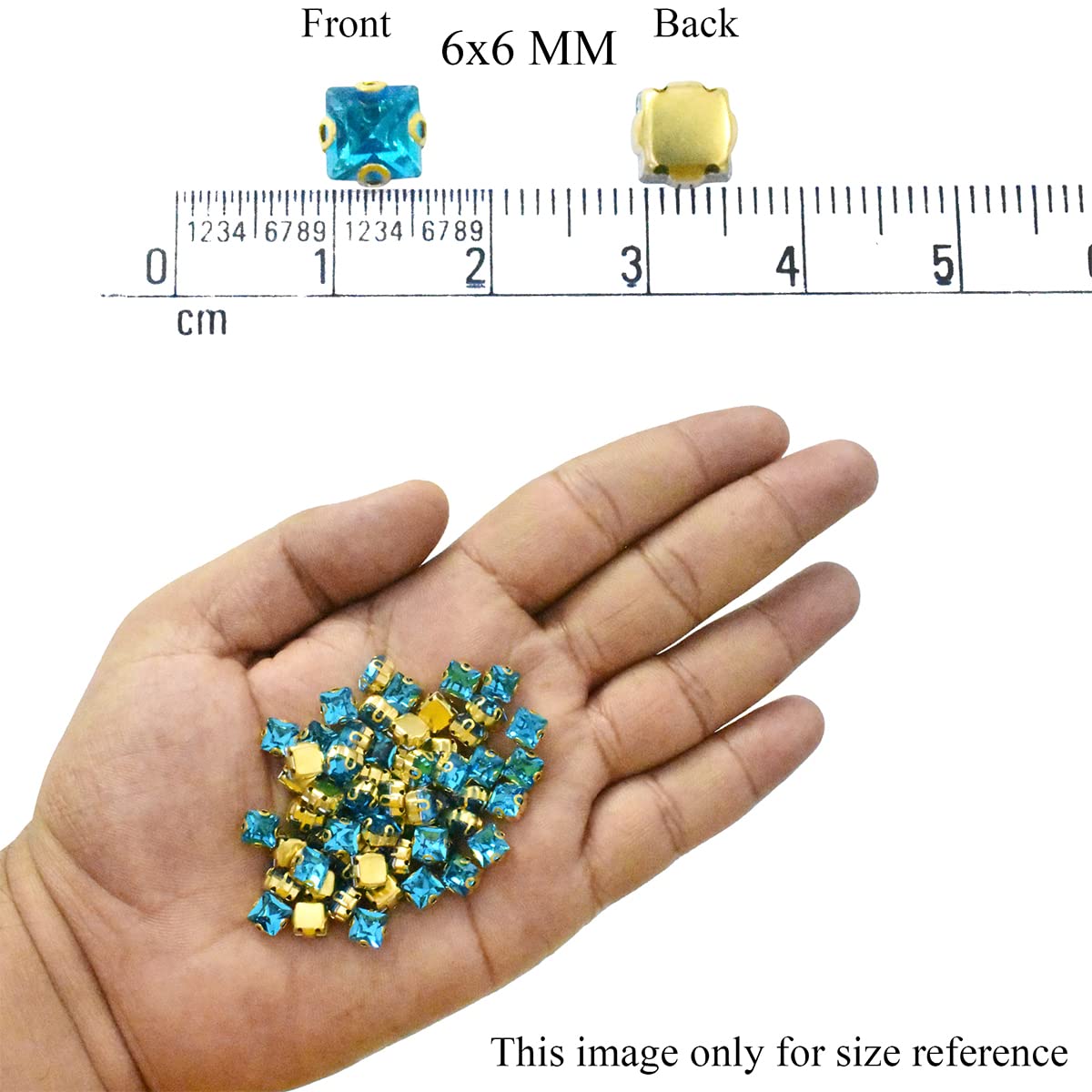Brighten up your craft projects with the EmbroideryMaterial Blue Color Sew On Glass Crystal Rhinestones Beads. This set of 48 stunning square-shaped stones in Blue colors adds a touch of brilliance and vibrancy to your creative endeavors. Each stone measures 6x6 MM making them perfect for various crafting applications such as jewelry making embroidery clothes embellishment and DIY projects.Style: These glass crystal stones feature a square shape with D Shape Claws for easy attachment to your crafts. Number of Pieces: You'll receive 48 pieces in this set providing ample material for your crafting needs. Color: The stones come in a vibrant Blue color palette adding a playful and eye-catching element to your projects. Size: Each stone measures 6x6 MM offering a versatile size for different crafting applications. Material: Crafted from high-quality crystal-glass these stones boast a multifaceted cut finish that reflects light beautifully. The claws are made of brass ensuring durability and secure attachment without snagging on fabric.These glass crystal rhinestones are not only visually appealing but also easy to work with. The D Shape Claws are specially designed to prevent snagging on fabric making them ideal for attaching to garments dresses gowns and more. Whether you're embellishing a piece of jewelry adding sparkle to clothing or creating unique DIY projects these rhinestones are sure to impress.