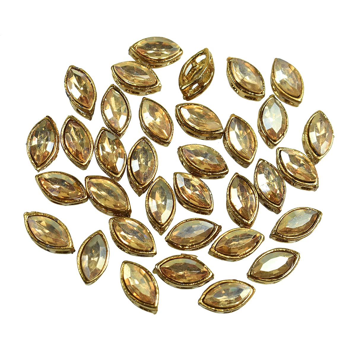HomeArt & CraftDIYEmbroiderymaterial Flat Back Gold Kundan Rhinestones in Raised Setting in Marquise Eye Shape for Jewelry Making & Embellishment-7 * 12MM-25 Pieces