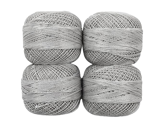 HUNNY- BUNCH® Premium Metallic Cotton Crochet Mercerised Shining Thread for Knitting, Weaving, Embroidery Work, Craft Making, DIY, and More (Set of 4-100 Grams) Silver