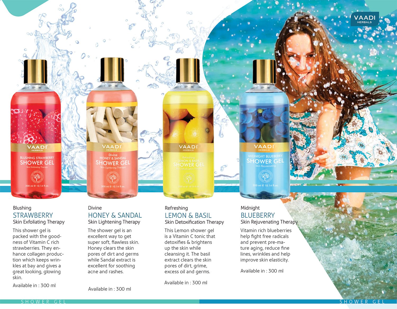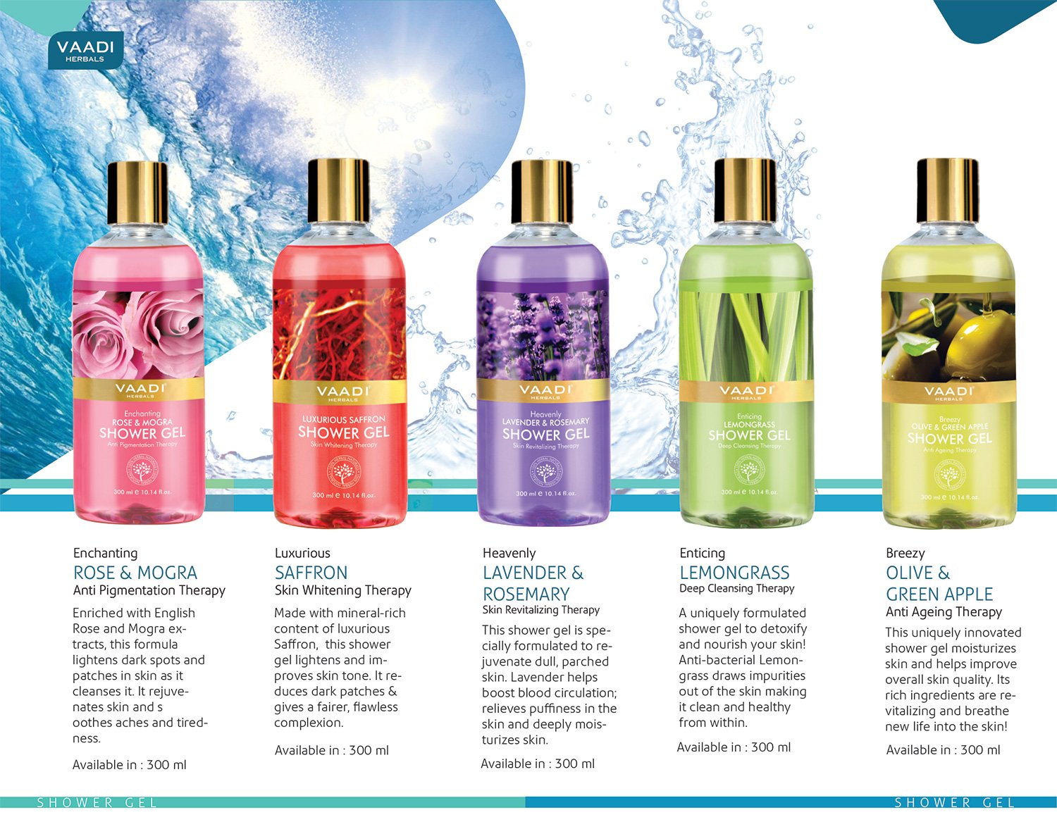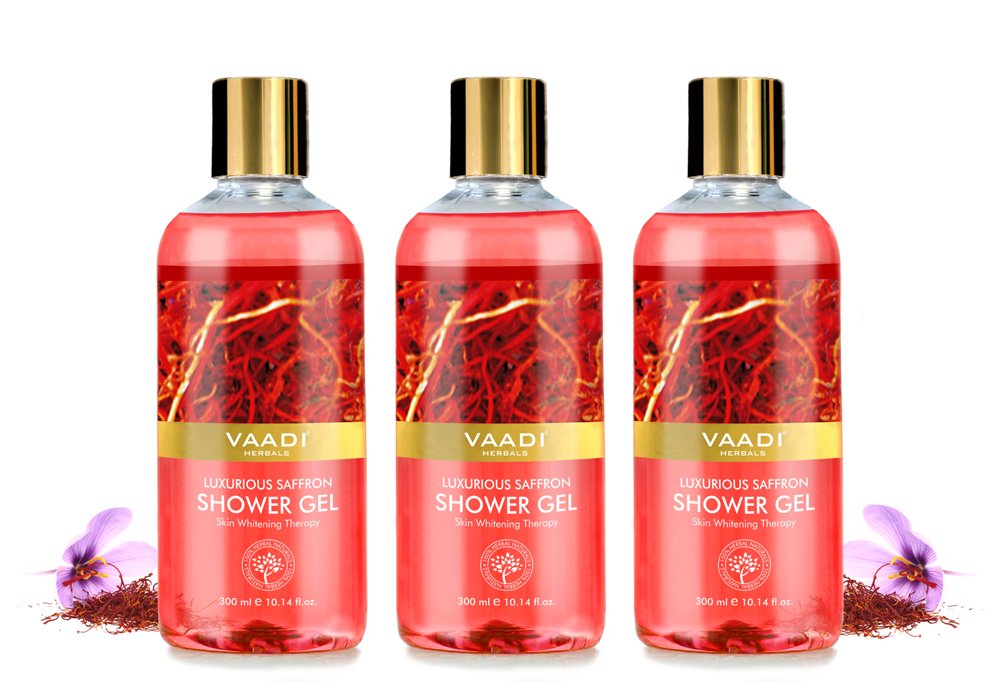 Vaadi Herbals Shower Gel - Sulfate-Free - Herbal Body Wash Both For Men And Women - 300 Ml (10.14 Fl Oz) - (Luxurious Saffron) (3 Bottles)