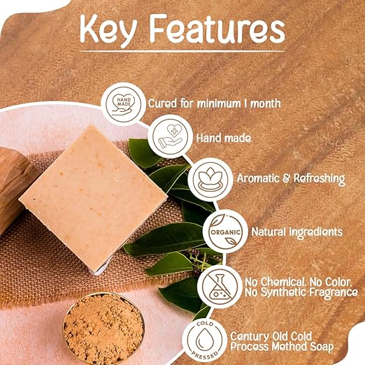 Infused with the natural goodness of sandalwood oil, this soap deeply nourishes and revitalizes your skin. Sandalwood oil works in harmony with other natural oils to promote healthy, hydrated, rejuvenated, and balanced skin.