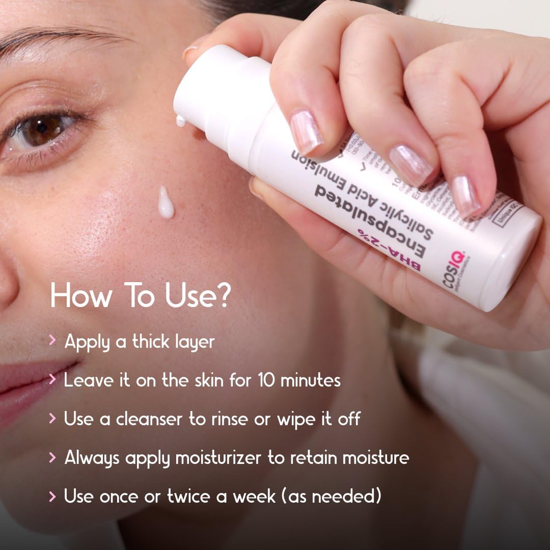 Cos-IQ BHA-2% Encapsulated Salicylic Acid Emulsion Face Serum for Sensitive Skin | Face Exfoliator for Blackheads Whiteheads Acne & Open Pores | Reduces Breakouts | For Women & Men | 30ml