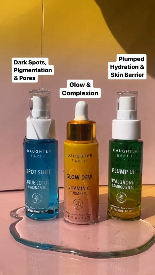 DAUGHTER EARTH Dreamy Drops Serum Trio | Vitamin C Serum + Niacinamide Serum + Hyaluronic Acid Face Serum | Glow Boost For Lines & Wrinkles | Brightening Serum For Dark Spots & Pigmentation |Pack of 3