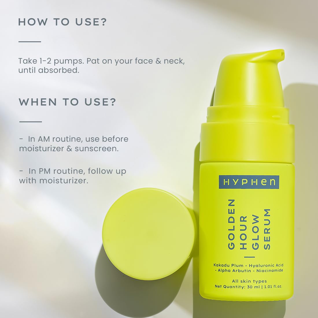 HomeBeautyFace CareMoisturizersSerum & EssenceHyphen Golden Hour Glow Face Serum With Niacinamide Alpha Arbutin Hyaluronic Acid & Kakadu Plum | For Glowing Skin & Hydration | Non Sticky Serum For Men & Women & All Skin Types | 30ml