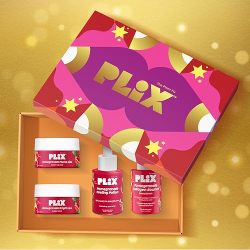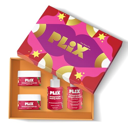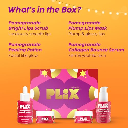 Try the "Plix Pomegranate Luxe Skin Secrets Gift Box" â an enchanting treasure chest of pampering skincare essentials. This thoughtfully curated gift box offers a luxurious skincare experience in an affordable price making it the ideal present for any special occasion. Within this beautifully designed package you'll find a selection of Plix's premium pomegranate-infused skincare products. The Pomegranate Bright Lips Scrub takes your lips on a journey of transformation leaving them irresistibly smooth and velvety. As for the Pomegranate Plump Lips Mask it creates plump and glossy lips that are bound to steal the spotlight. The Pomegranate Peeling Potion works its magic delivering a radiant facial-like glow that rejuvenates your skin from within. And don't forget the Pomegranate Collagen Bounce Serum a true fountain of youth for your skin leaving it firm and radiantly youthful. The Plix Pomegranate Luxe Skin Secrets Gift Box is your go-to option for gifting whether it's a birthday holiday or just to show someone you care. The premium packaging adds a touch of elegance to your gesture and its unique contents ensure that the gift of beauty and self-care is always appreciated.