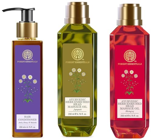 Forest Essentials Ayurvedic Herb Enriched Head Massage Oil Japapatti & Forest Essentials Hair Cleanser Amla, Honey & Forest Essentials Ayurvedic Herb Enriched Head Massage Oil Bhringraj