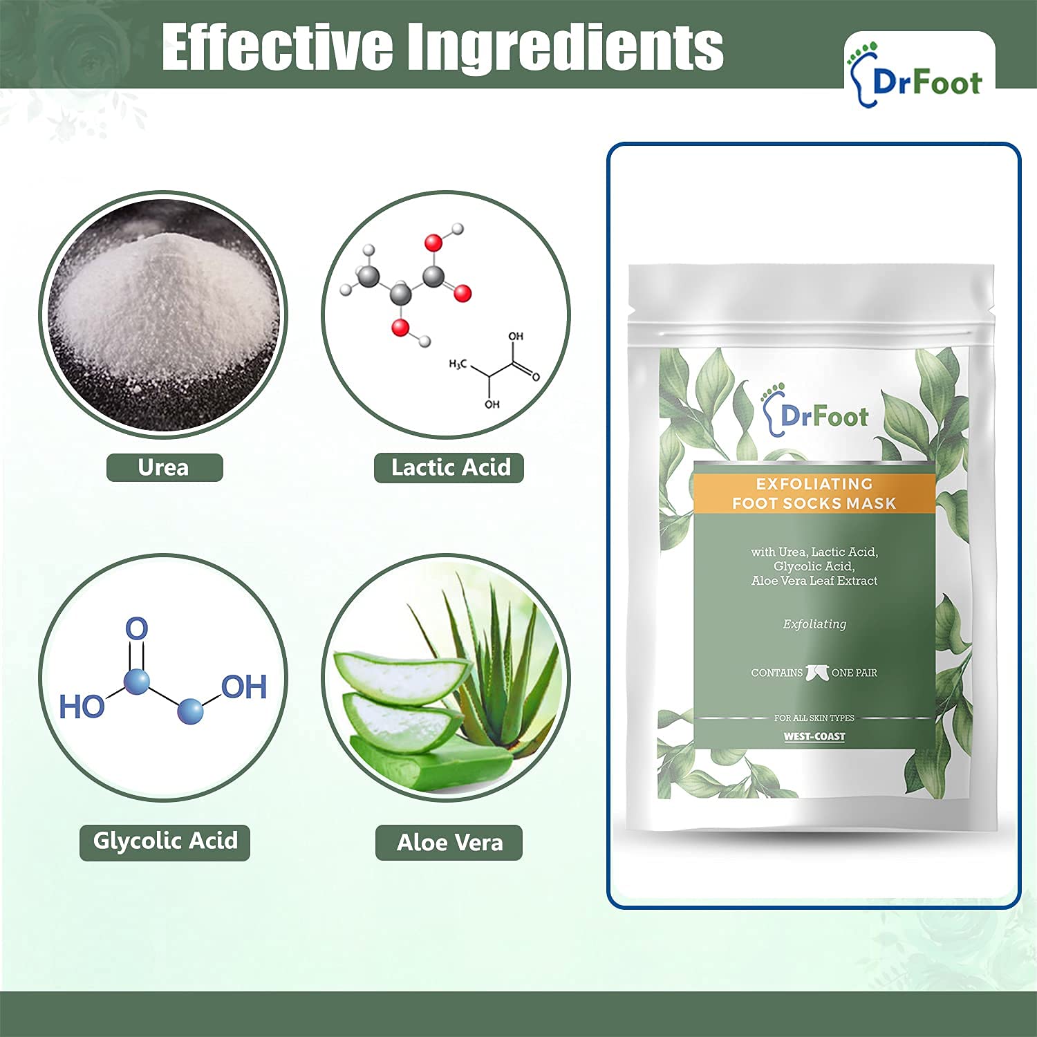 Dr Foot's foot care products are specially designed to rejuvenate tired dry and cracked feet. Our range includes moisturizing and repair creams and gels exfoliating masks in soles and foot tools. Our Exfoliating Foot Socks Mask give a nourishing boost to dull dry and rough feet while hydrating cuticles and even toned skin. This mask aided with the power of AHA's & BHA's helps in exfoliating dead skin and natural extracts of aloe vera will illuminate your skin from within. All our products are cruelty-free non-toxic dermatologist tested and safe for skin types ranging from dry to very dry skin. Made in India our products are suitable for adults of all ages and comes in a refreshing aroma. Customers love the effectiveness of our products in treating various foot concerns. Dr Foot's range aims to address common foot care issues like cracked heel callus corns bacterial growth and fungal infections providing specialized solutions for a diverse range of needs.