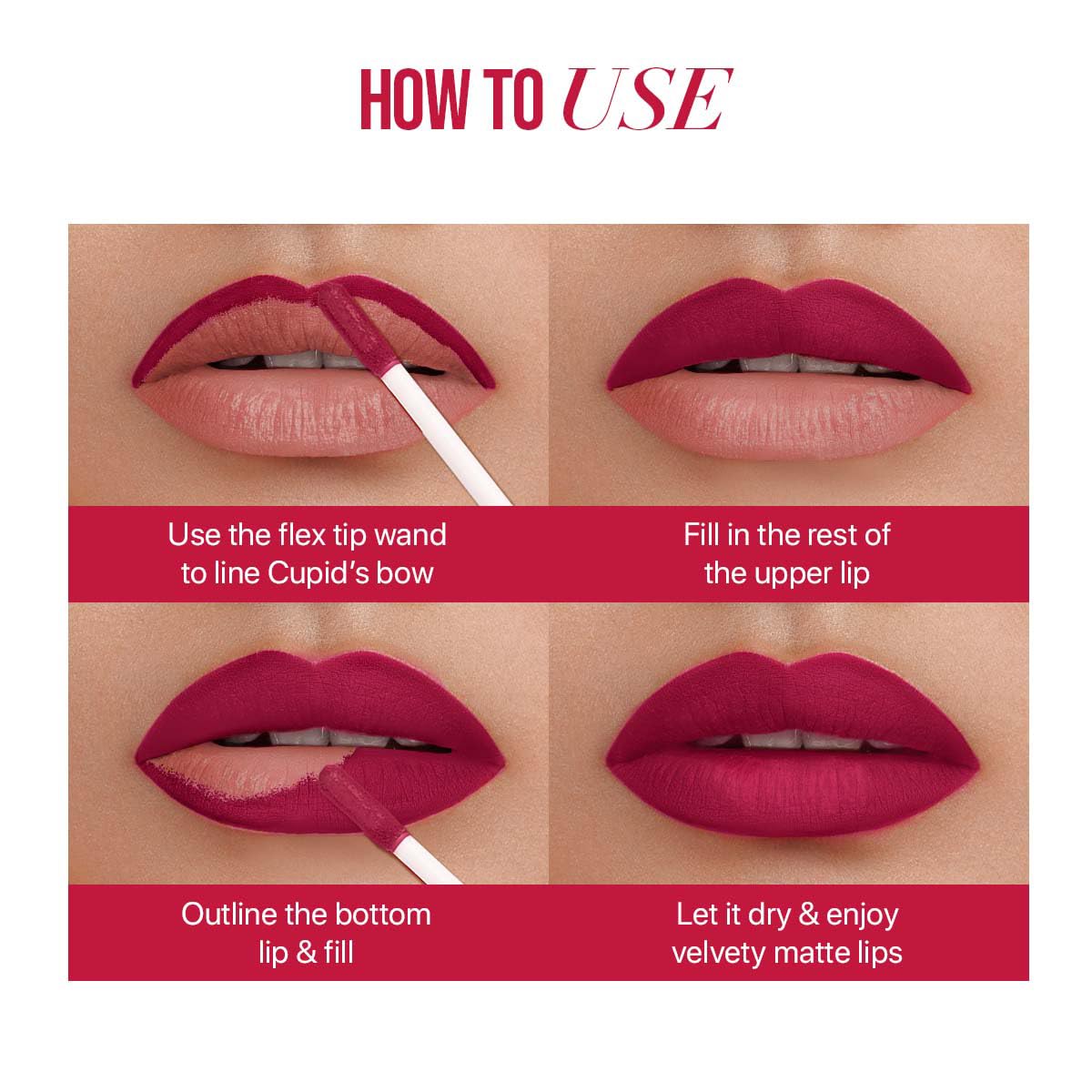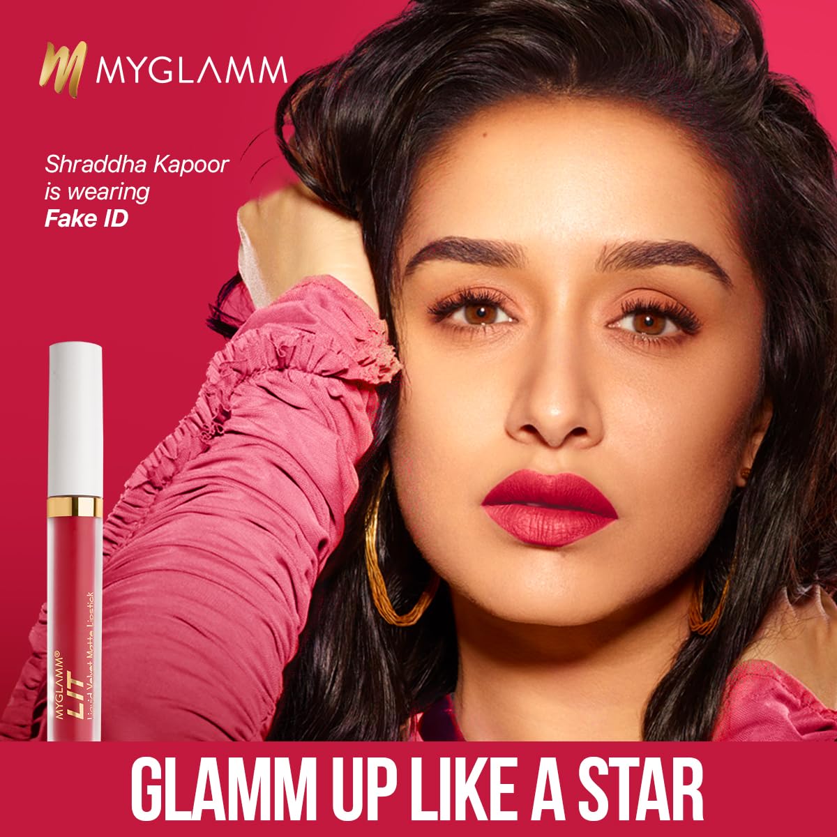 A smooth creamy mousse formula MyGlamm LIT Velvet Matte Liquid Lipstick is poppin with pigment. This true matte lipstick gives one swipe pigmentation for super-saturated payoff. Infused with Vitamin E the moisturising matte glides on the lips for a comfy and cushy feel. MyGlamm LIT Velvet Matte Liquid Lipstick is available in 12 vivid shades in an easy-to-carry pack for velvety lips that do all the talking (and more) - zero cake or flake!