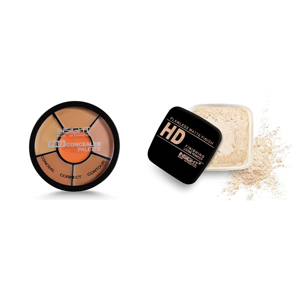 INSIGHT Cosmetics Natural Pro Concealer Palette Powder (Concealer)INSIGHT cosmetics pro Concealer palette features a wheel of 6 shades that can be used to camouflage imperfections conceal dark circles and contour. Its soft creamy texture blends effortlessly to give you a smooth flawless finish. Apart from that it also helps cover discoloration redness and instantly brightens up the skin.Insight Pressed Powder Translucent Face Powder (IVORY IVORY)Soft focus translucent setting powder delivers a silky smooth finish sets makeup & ensures long lasting finish. A translucent finishing powder that sets your makeup mattifies skin & gives flawless finish.