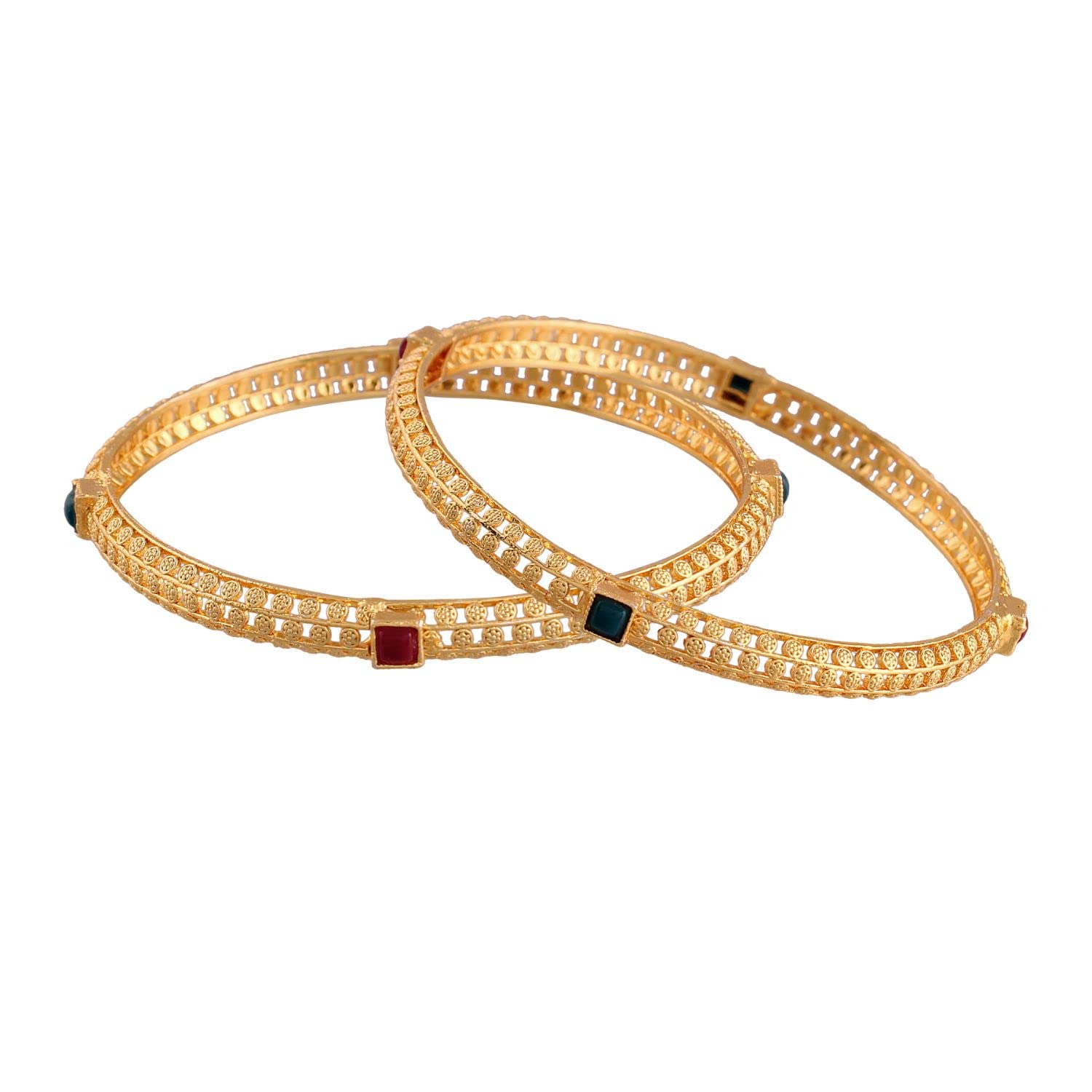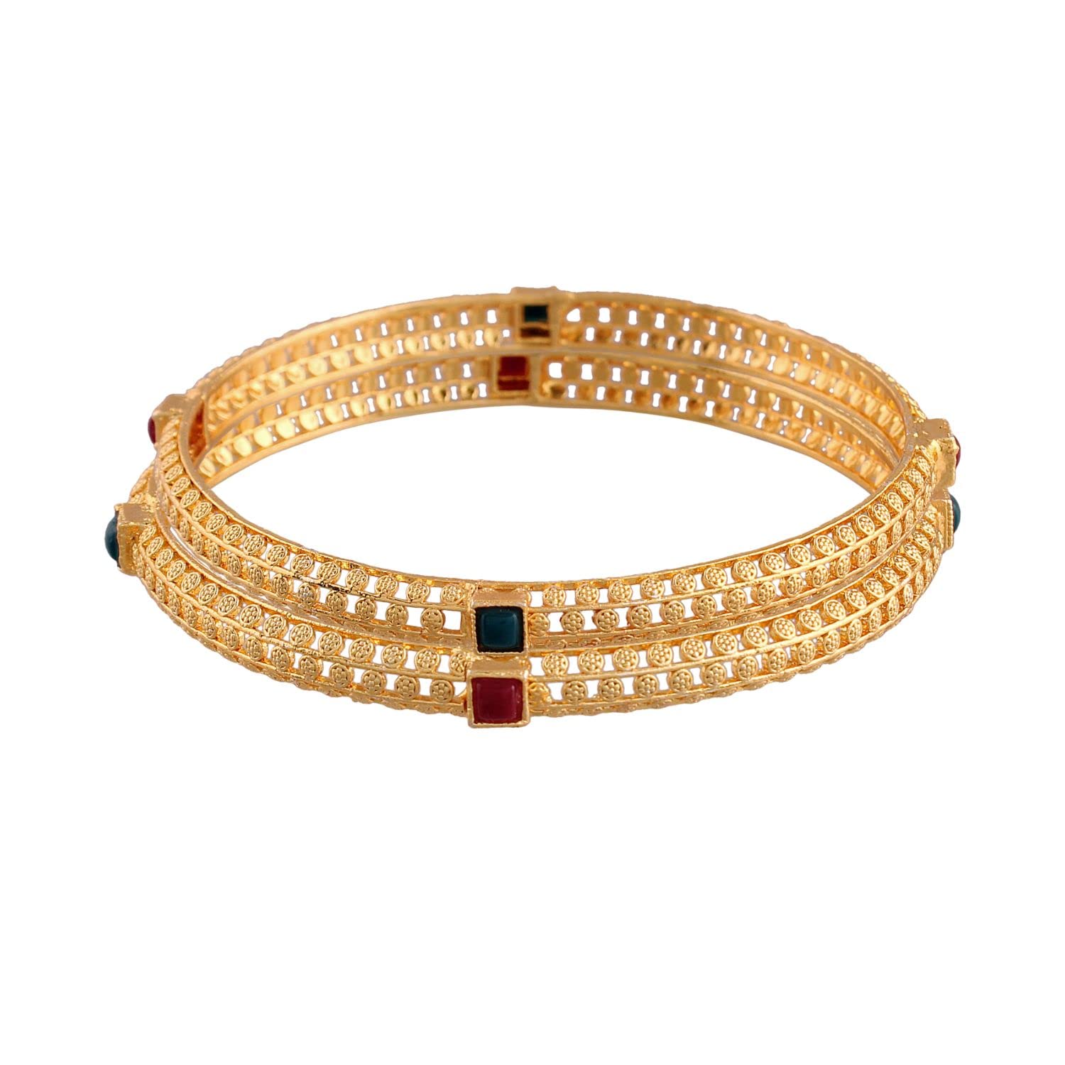 I Jewels Gold Plated Indain Wedding Bollywood Multicolor Stone Studded Bangles For Women (ADB317MG)