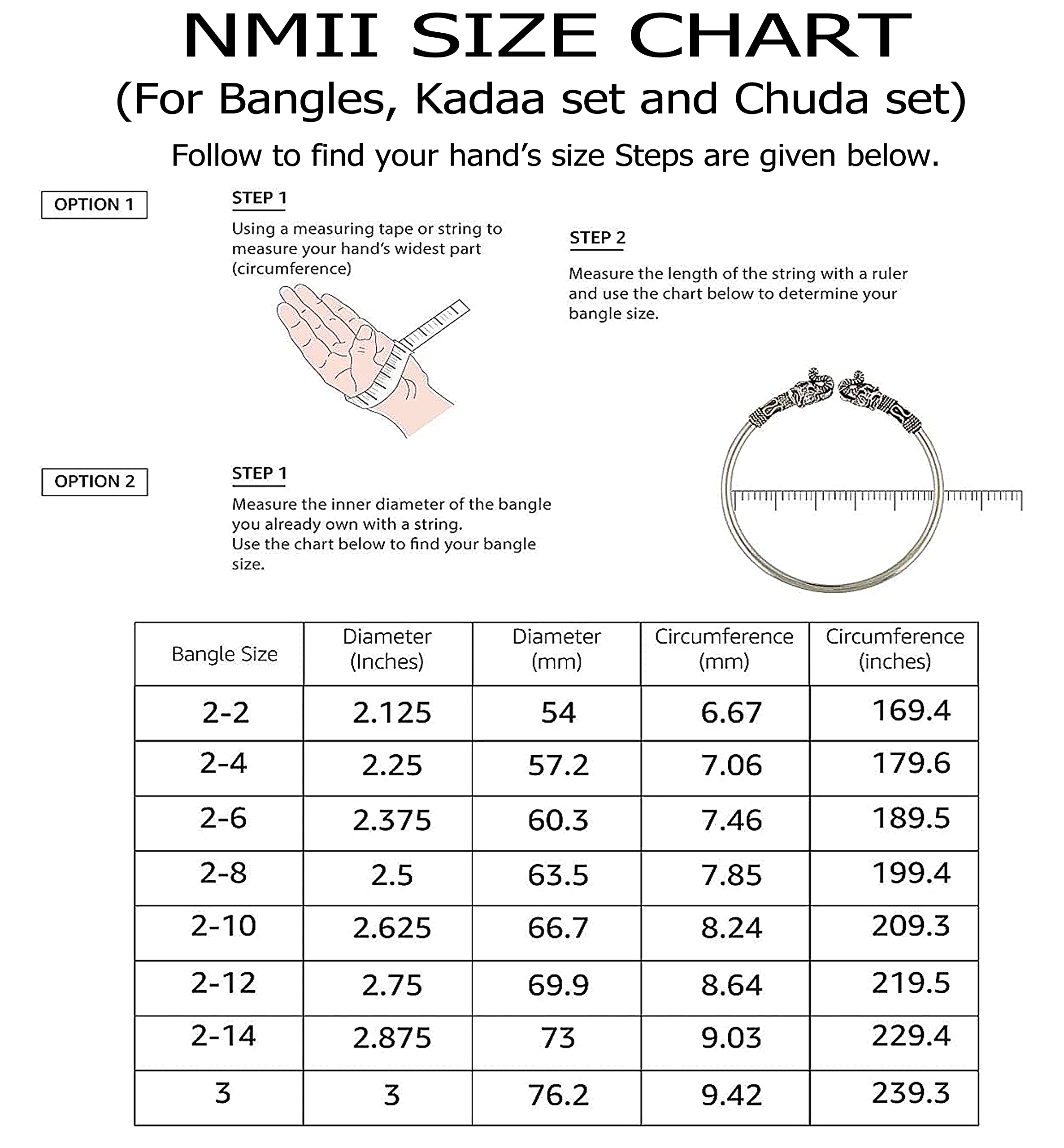 These Ball Chain With Zircon Gemstone Studded Bangle set can make your hands pretty and attractive. These Bangle set are from The Latest Collection of NMII (New Make In India) . It's Beautiful Glossy Finish Designer and Zircon Gemstone Worked Bangle are made by good quality Zircon Gemstone and Metal Material. These NMII (New Make In India) Stylish Trendy and Zircon Gemstone with Ball Chain Studded Bangle Set Complete Your Look On Any Occasions Like Festival Party Wedding and Engagement etc. Welcome To The NMII (New Make In India)The World of Glass Bangles Metal Bangles Acrylic Bangles Chuda Set Bridal chuda set Kaleere set and Kadaa set or Other Women Jewellery accesories. Shop here from a wide range of following types of Bangles Glass Bangles Metal Bangles Silk Thread Bangles Acrylic (Plastic) Bangles Zircon Bangles Beads Worked Bangles Kundan Worked Bangles Lac Material Bangles New Electric Light Chudaa etc. From NMII (New Make In India) On Amazon. NOTE : Use NMII (New Make In India) Size Chart For Better Understanding About Your Chuda Set Size. CLEANING INSTRUCTIONS : Clean It with Very Dry Soft and Smooth Cotton Cloth. SAFETY INSTRUCTIONS : Keep the Bangles/Kadaa away from Direct Water Perfume Deodrant Sunlight and Other Chemical Substances and Keep the Bangle in a zip lock air tight pouch. Thanks For Choosing Our Brand NMII (New Make In India). If You Love and Like our products. So Please share your valuable feedback and customer review for our best experience and Share our product`s link to your friends and family. If you are facing any kind of problem Please refer to our Product Description such as Size and Care Instructions. If your problem is not solved by Our Description So Please contact us. Contact details are given below (In Product Description Section). We have been start selling products on Amazon since 2016.