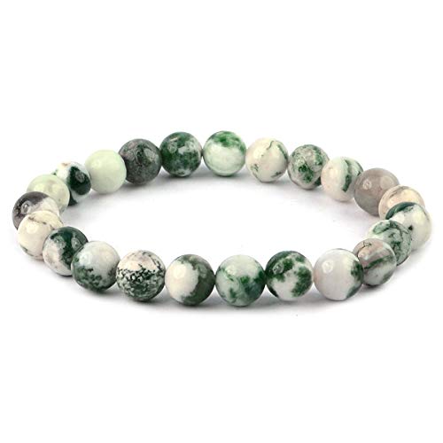 AAA Tree Agate Bracelet Natural Crystal Stone 8 mm Beads Bracelet Round Shape for Reiki Healing and Crystal Healing Stone (Color : Multi)