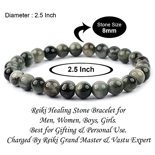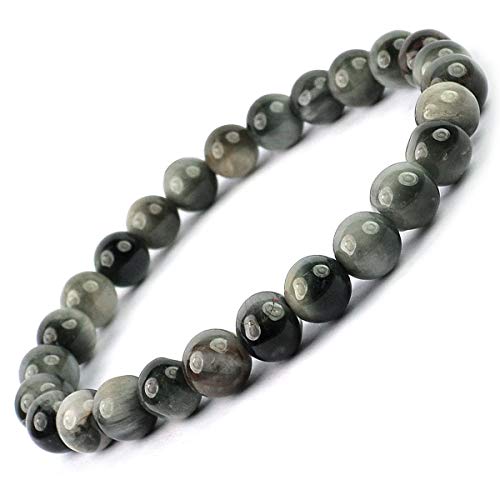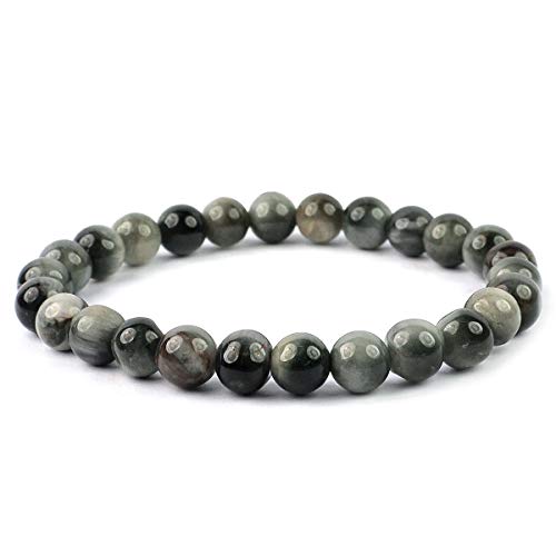 Natural Cats Eye Bracelet Crystal Stone 8 mm Beads Bracelet Round Shape (Color : Black & Grey)