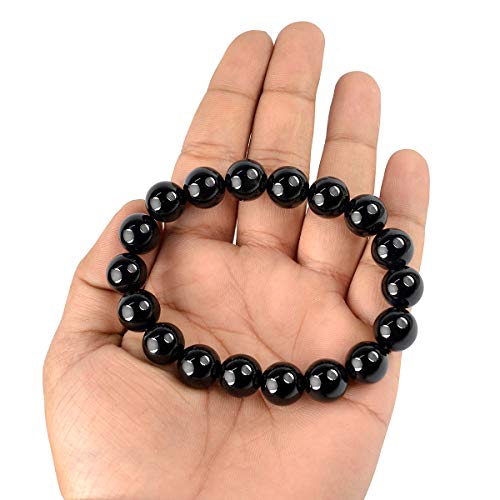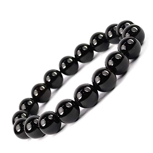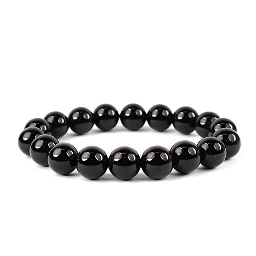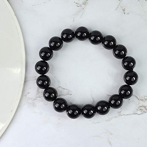 Natural Black Onyx Bracelet Crystal Stone 12mm Round Bead Bracelet for Reiki Healing and Crystal Healing Stone (Color : Black)