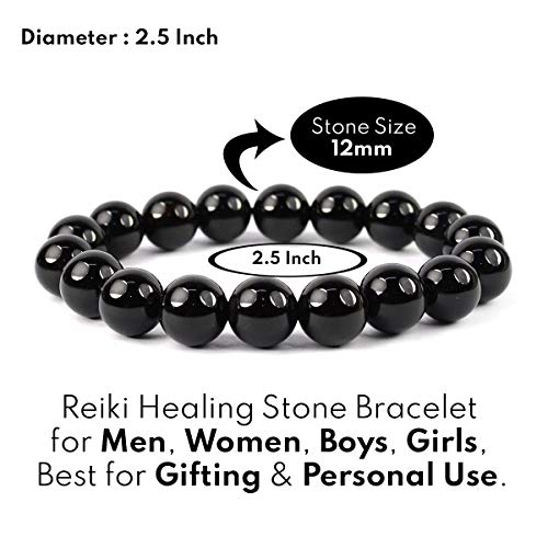 Natural Black Onyx Bracelet Crystal Stone 12mm Round Bead Bracelet for Reiki Healing and Crystal Hea