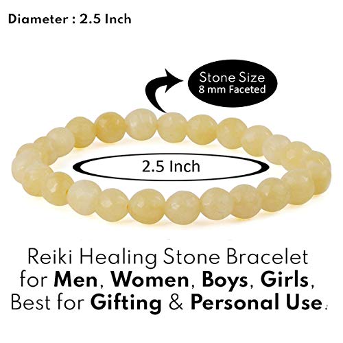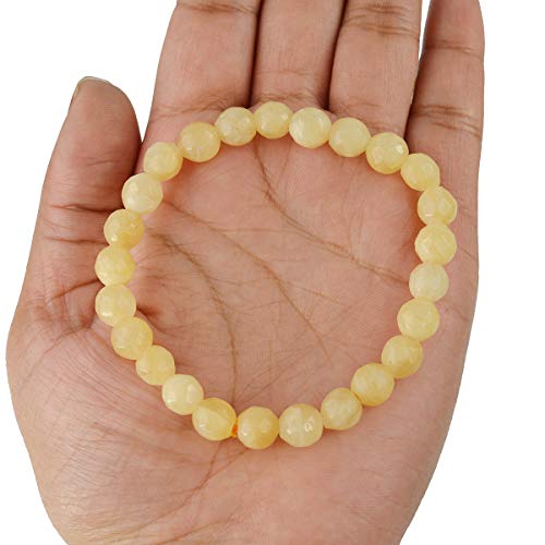 Natural Yellow Calcite Bracelet Crystal Stone 8 mm Diamond Cut Bead Bracelet for Reiki Healing and Crystal Healing Stones (Color : Yellow)