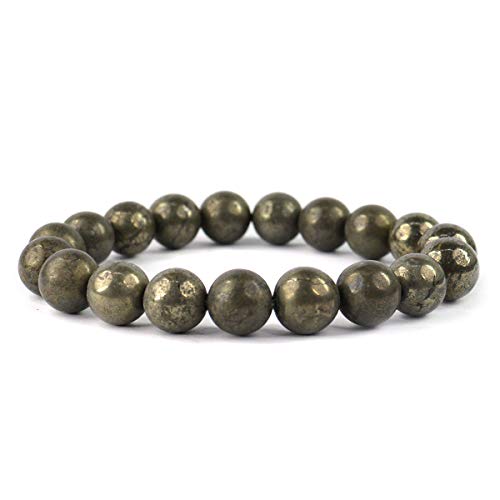 Natural Pyrite Bracelet Crystal Stone 10mm Round Bead Bracelet for Reiki Healing and Crystal Healing Stone (Color : Golden)