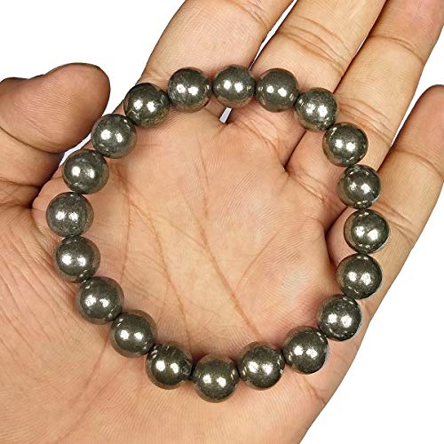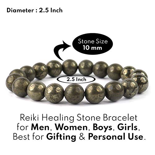 Natural Pyrite Bracelet Crystal Stone 10mm Round Bead Bracelet for Reiki Healing and Crystal Healing