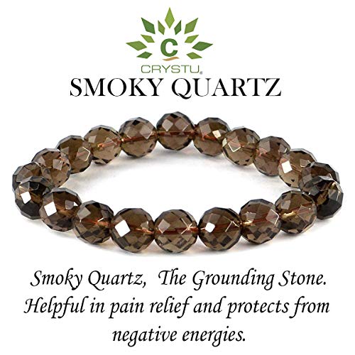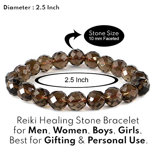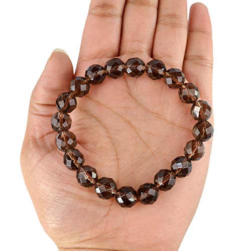 Natural Smoky Quartz Bracelet Crystal Stone 10mm Diamond Cut Beads Bracelet for Reiki Healing and Cr