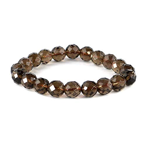 Natural Smoky Quartz Bracelet Crystal Stone 10mm Diamond Cut Beads Bracelet for Reiki Healing and Crystal Healing Stones (Color : Grey)