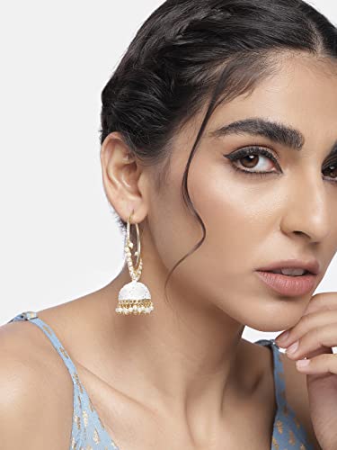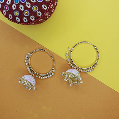 I Jewels 18k Gold Plated Indian Bollywood Festive Party Wear Enamel Pearl Hoop Jhumki Earrings for Women (E2915)