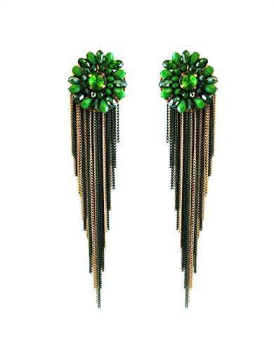 La Belleza Crystal Rhinestone Round Tassel Drop Dangler Long Multi Chain Earrings Fashion Jewellery for Girls and Women
