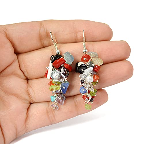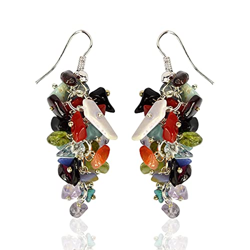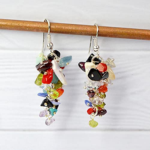 Multi Stone Earrings Natural Chip Beads Earrings for Women, Girls (Multi)