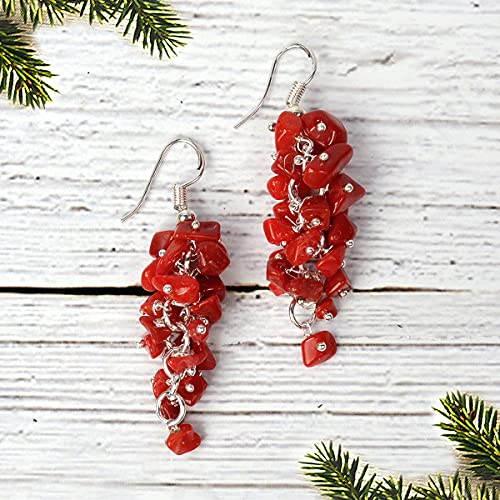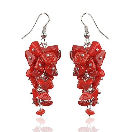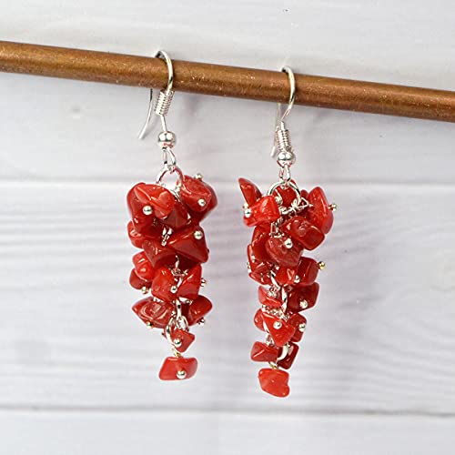 Red Stone Earrings Natural Chip Beads Earrings for Women, Girls Red
