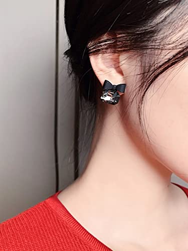 Yellow Chimes Earrings For Women Black Bow shape Crystal Drop Stud Earrings For Women and Girls One Size Metal Crystal