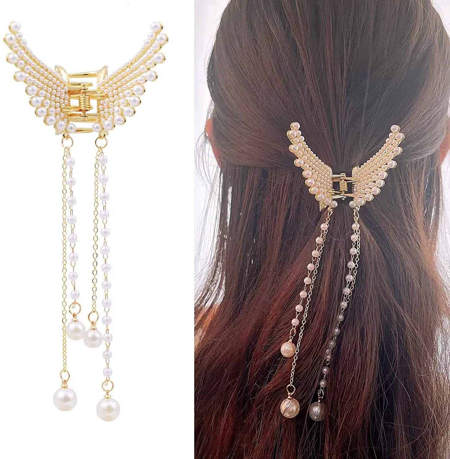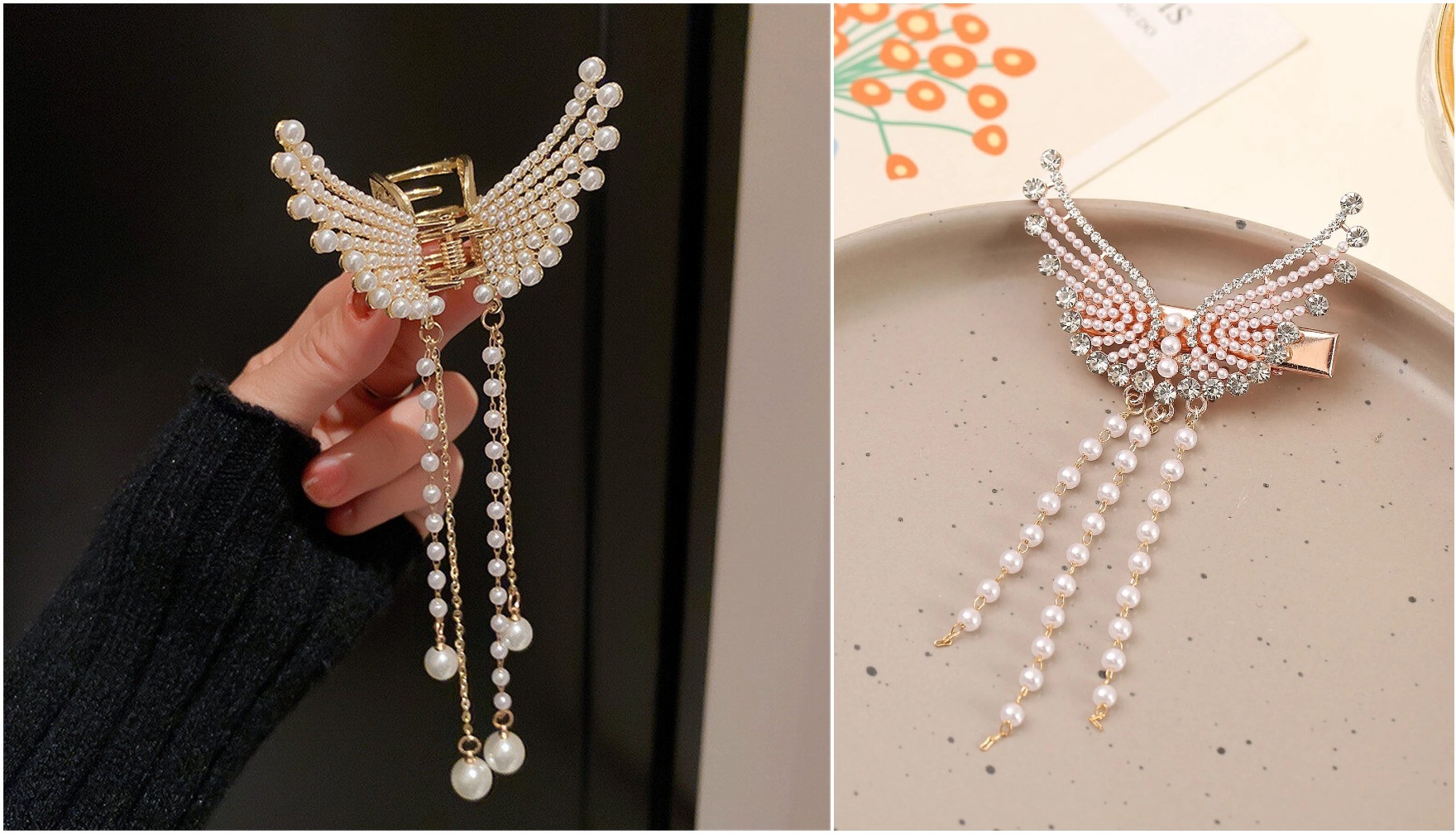 Blubby 2 Pcs Combo Pack of Pearl Butterfly Hair Clutcher with Butterfly Hair Clip