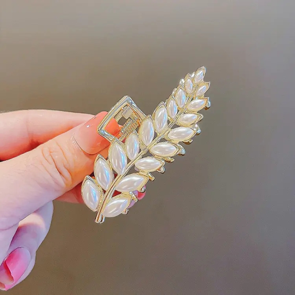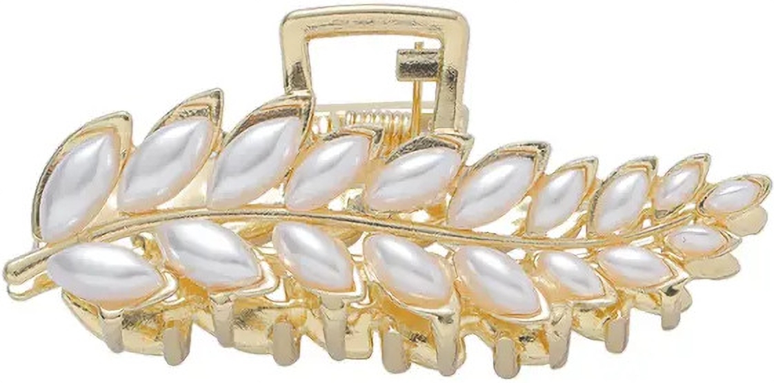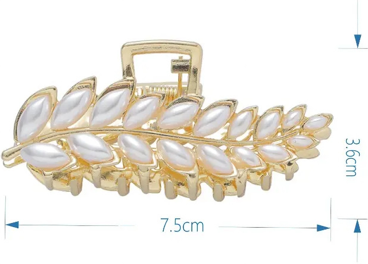 Blubby Leaf Design Pearl White Stone Hair Clutcher Hair Claw Clips for Girls and Women
