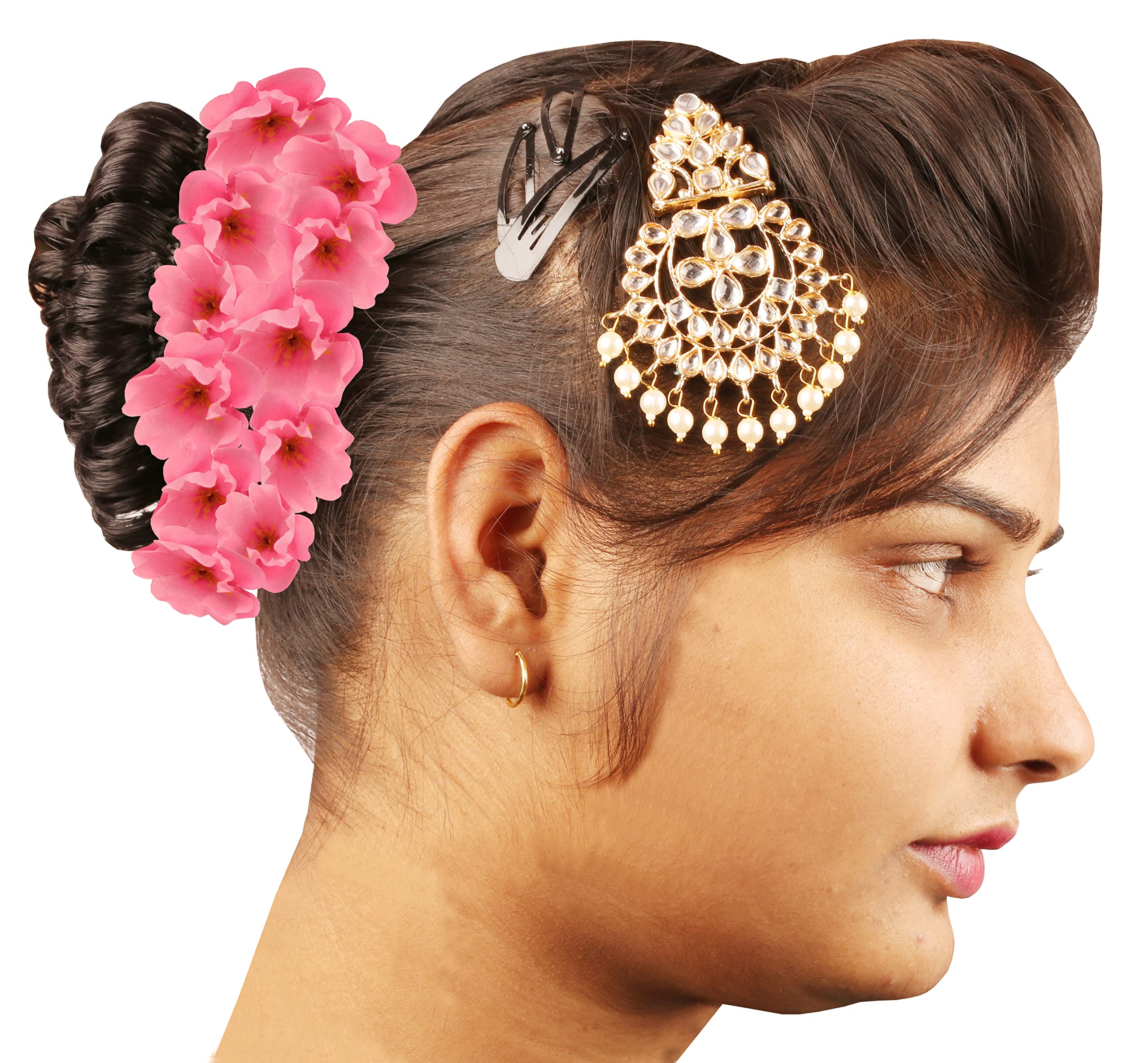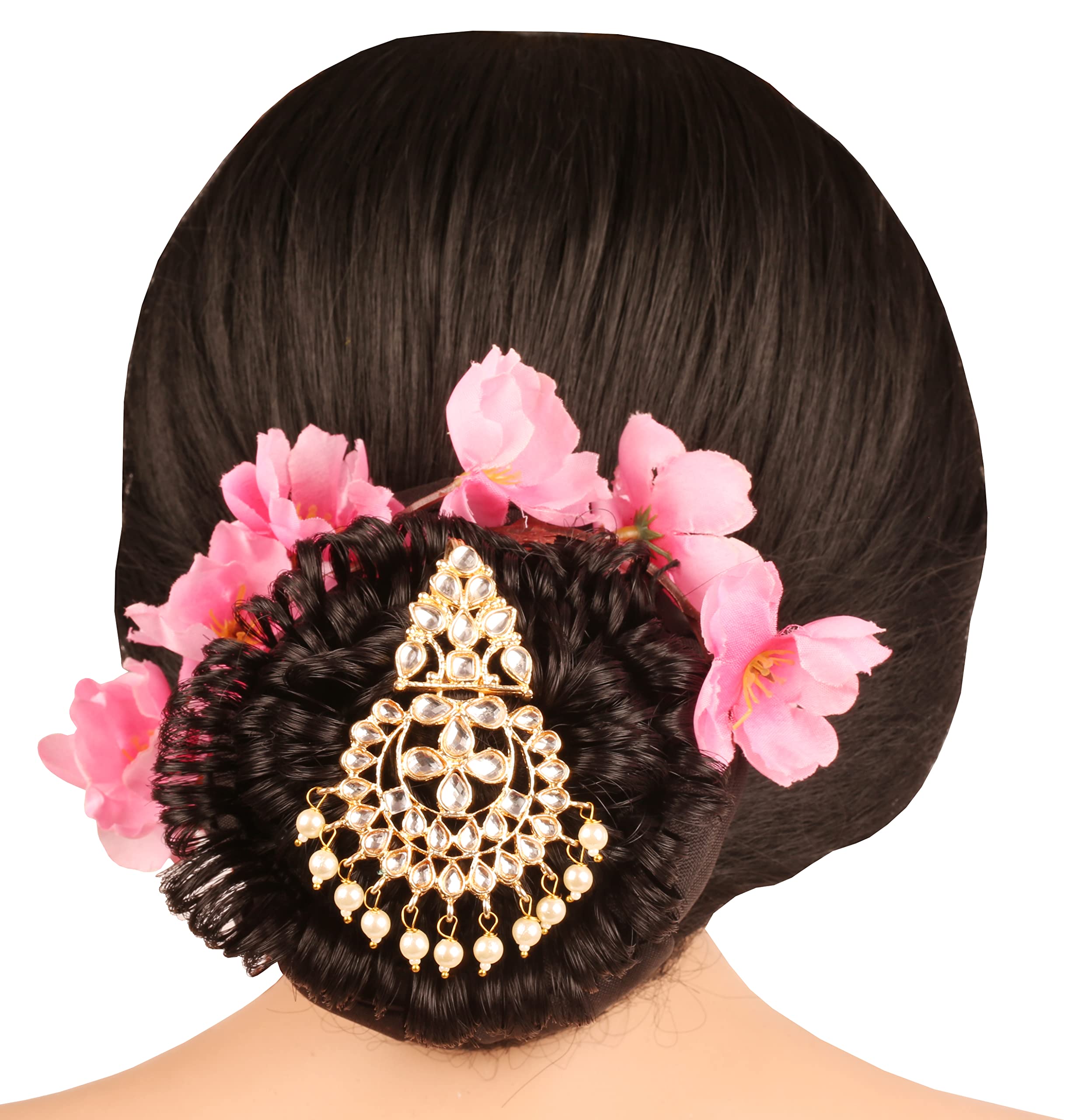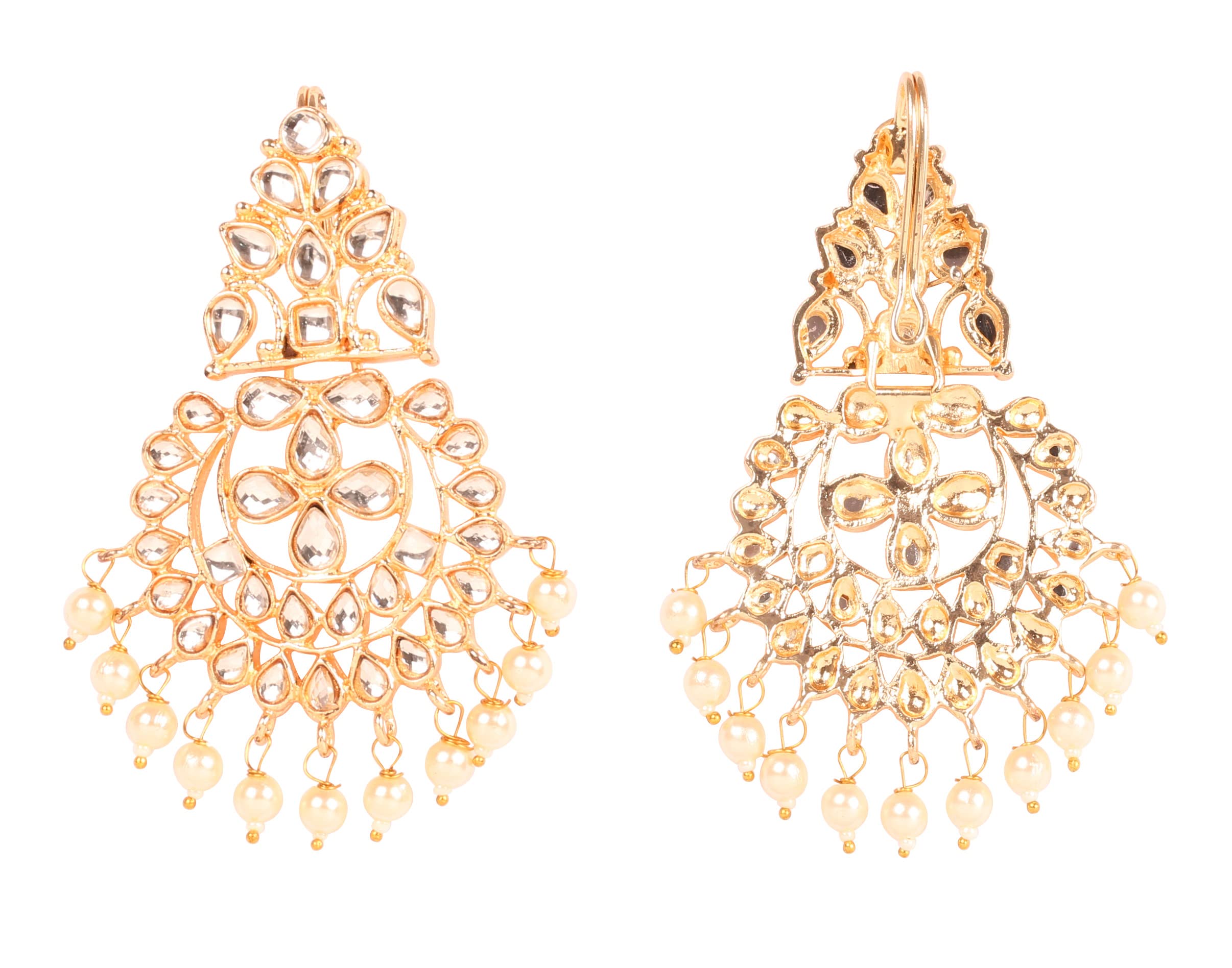 HomeFashionHair AccessoriesNew! Touchstone Indian Bollywood Handcrafted Floral Crescent Inspired Mughal Kundan Polki Look Faux Pearls Designer Jewelry Jhoomer Hand Head Wedding Accessory in Gold Tone for Women.