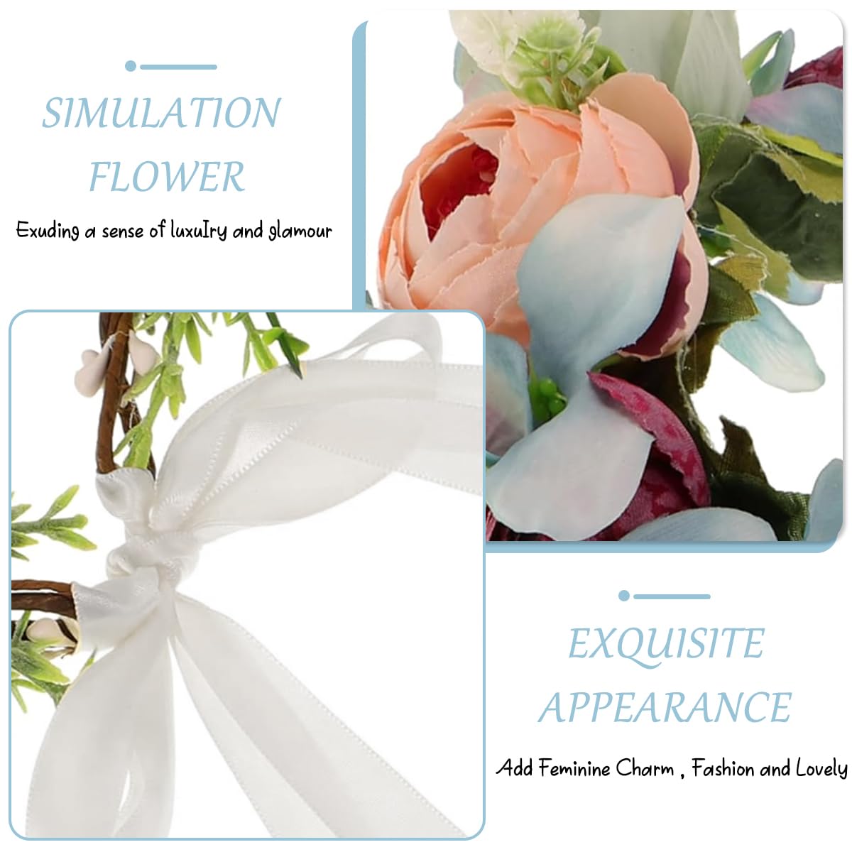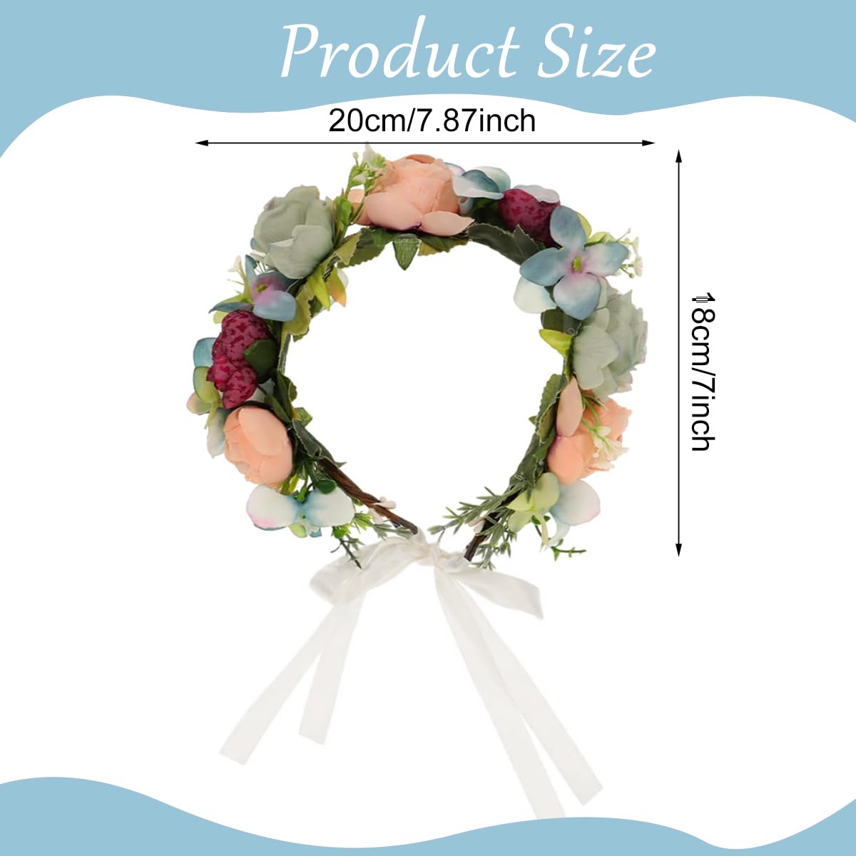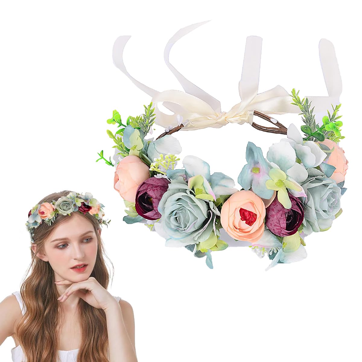 HomeFashionHair AccessoriesSANNIDHI Flower Crown For Women Hairband Tiara For Women Ladies Bridal Floral Garland Headwear With Ribbons Adult-Size Fairy Flower Headband For Wedding Party Ball Events Multicolor