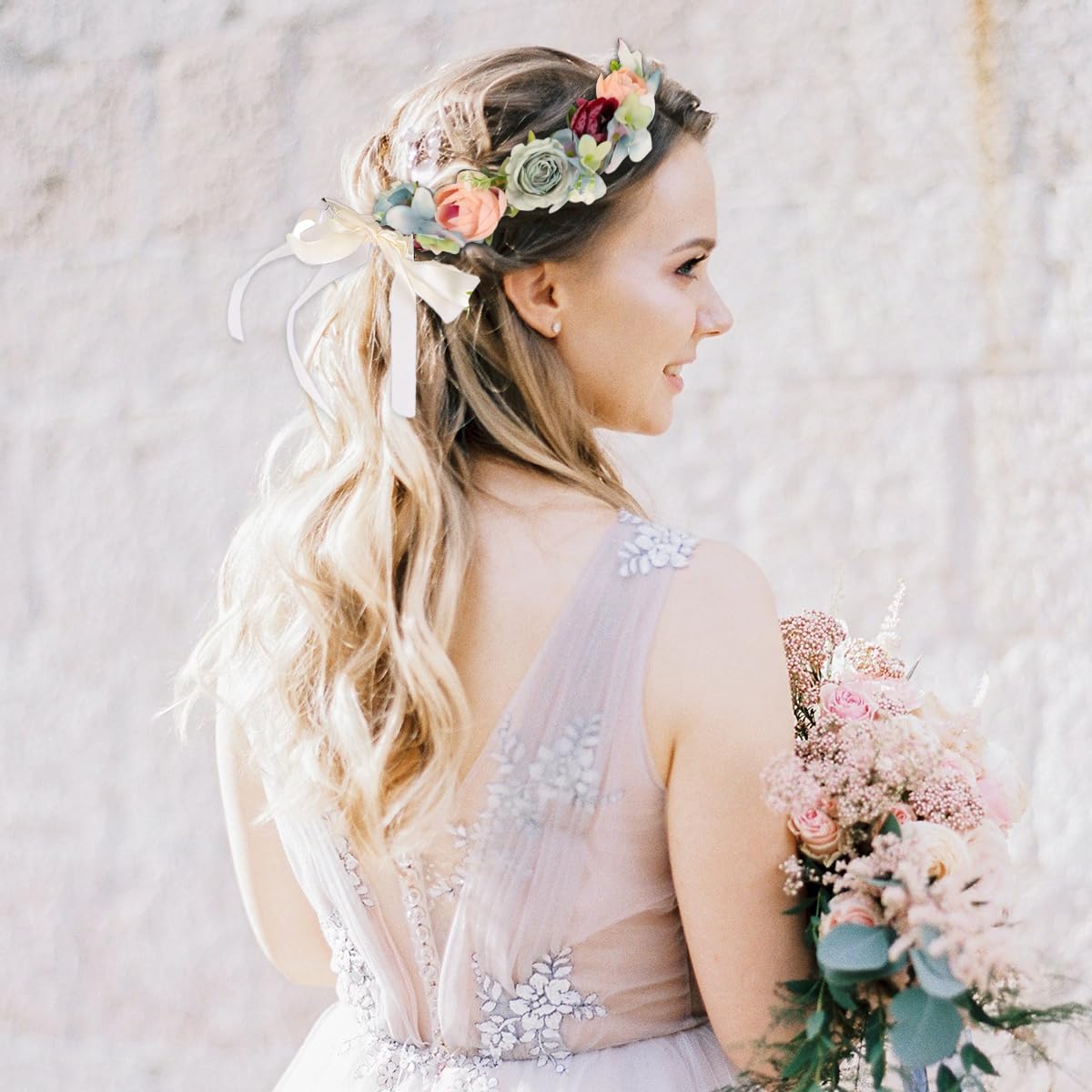 SANNIDHI Flower Crown For Women Hairband Tiara For Women Ladies Bridal Floral Garland Headwear With Ribbons Adult-Size Fairy Flower Headband For Wedding Party Ball Events Multicolor