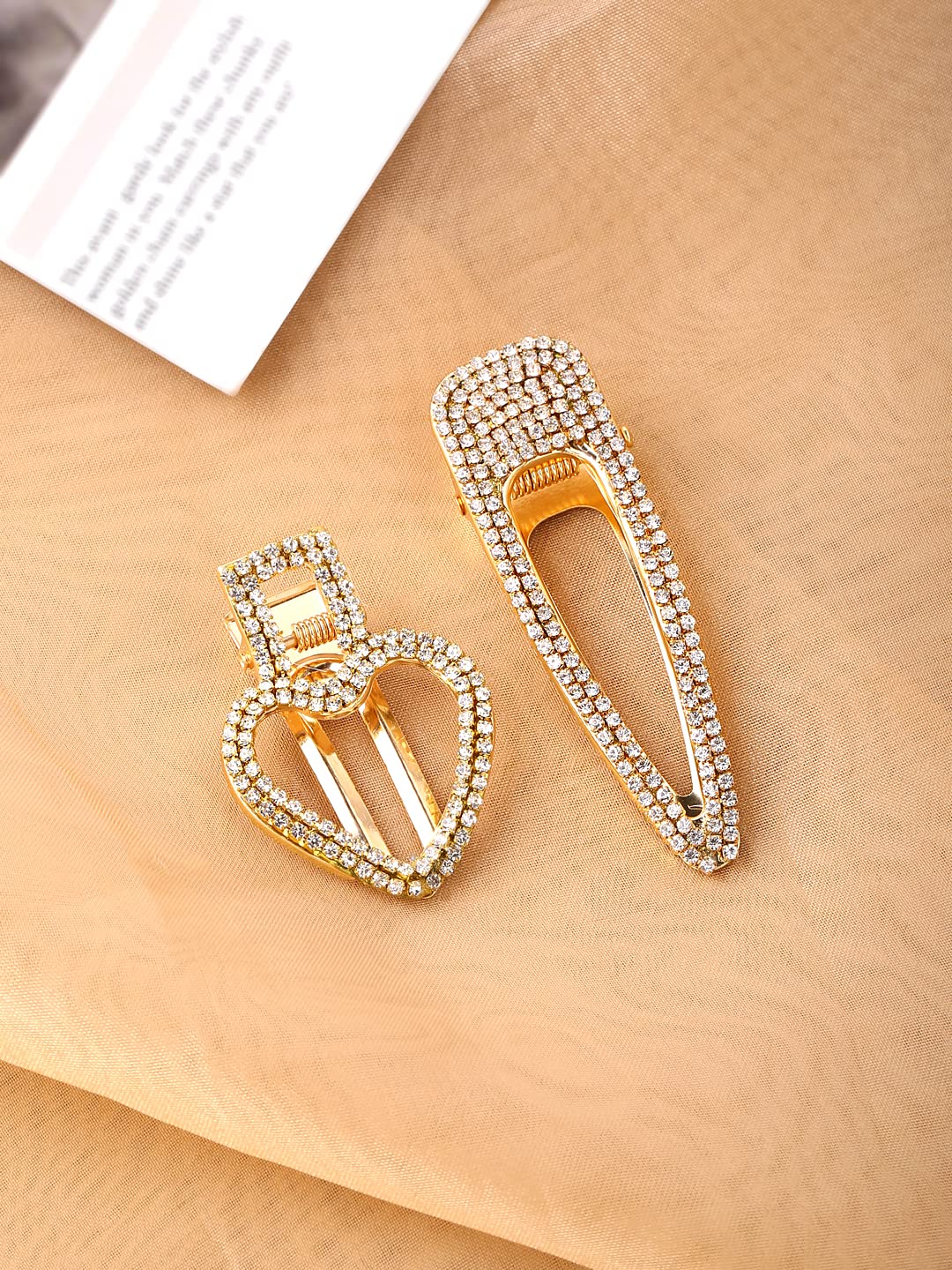 Yellow Chimes Hair Clips for Women Girls Hair Accessories for Women Golden Hair Clip Combo Set Hair Clips for Girls Crystal Hairclips Alligator Clips Hair Pins for Women and Girls Gift For Women