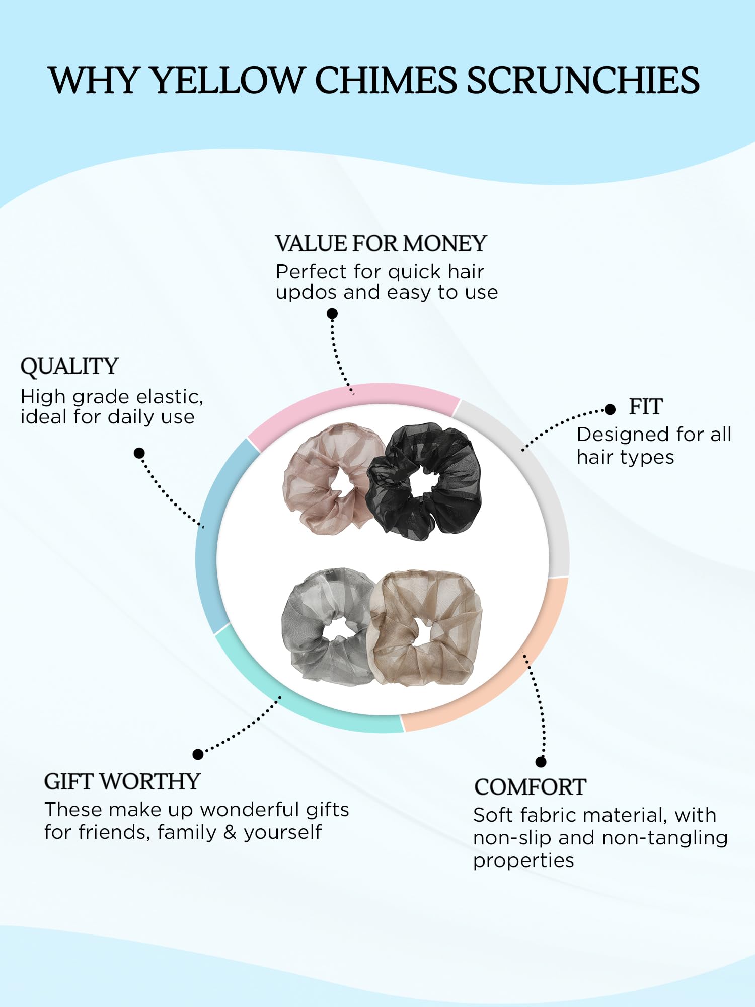 Yellow Chimes Scrunchies for Women Hair Accessories for Women 6 Pcs Net Fabric Scrunchies Set Rubber Bands Multicolor Scrunchie Ponytail Holders Hair Ties for Women and Girls Gifts for Women