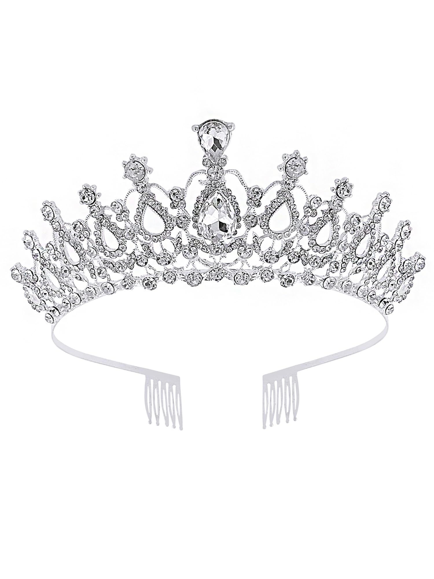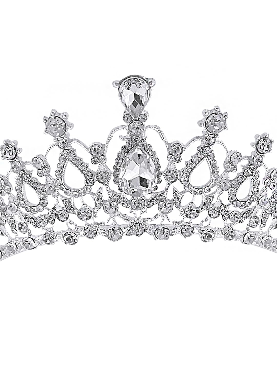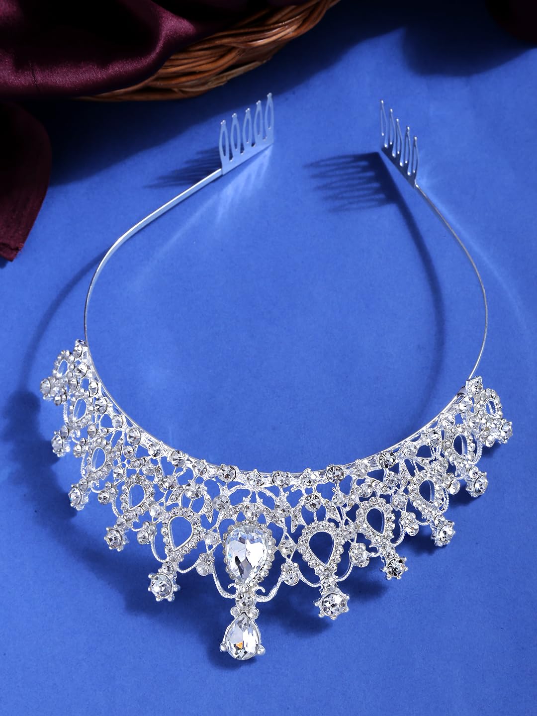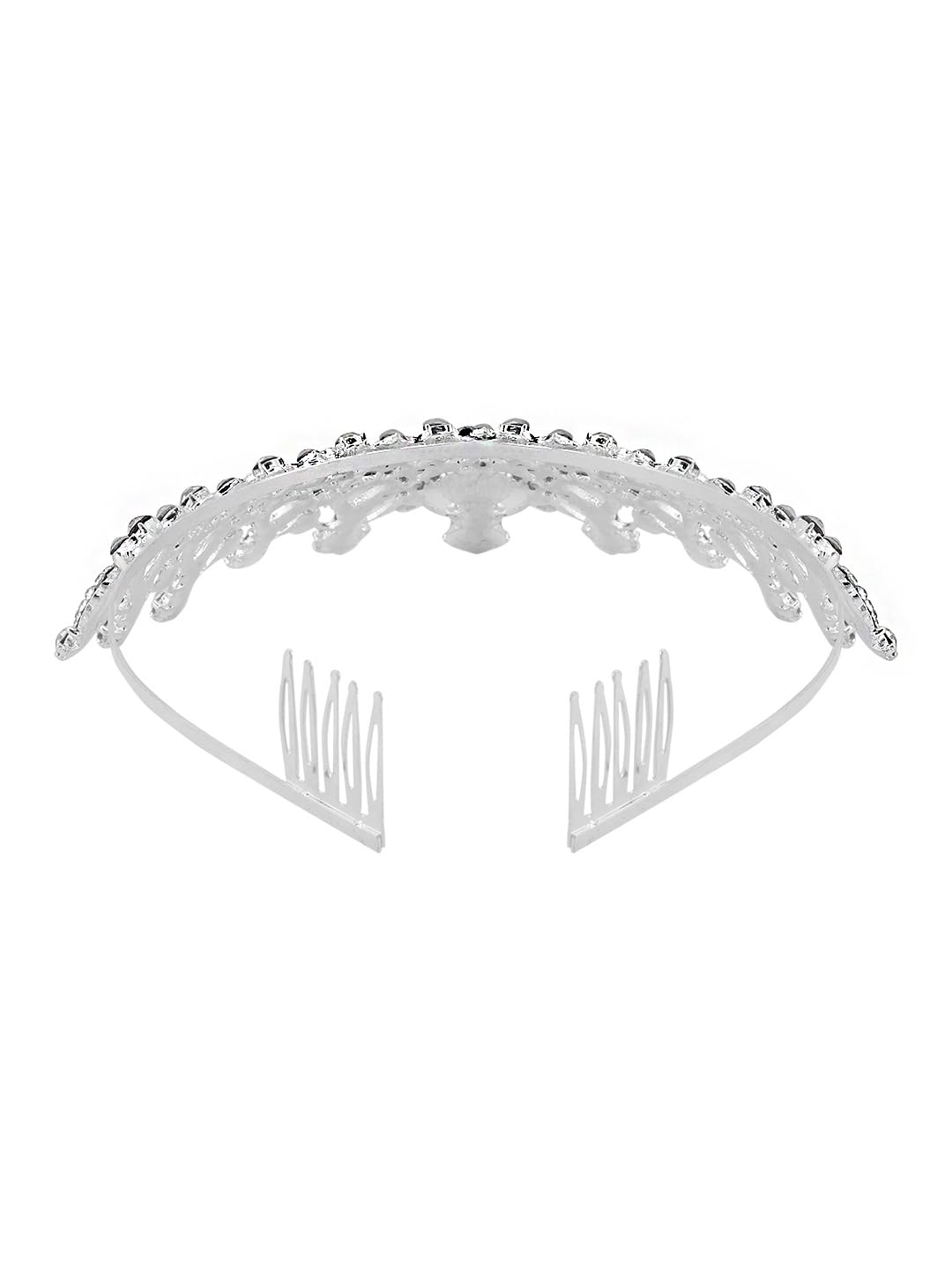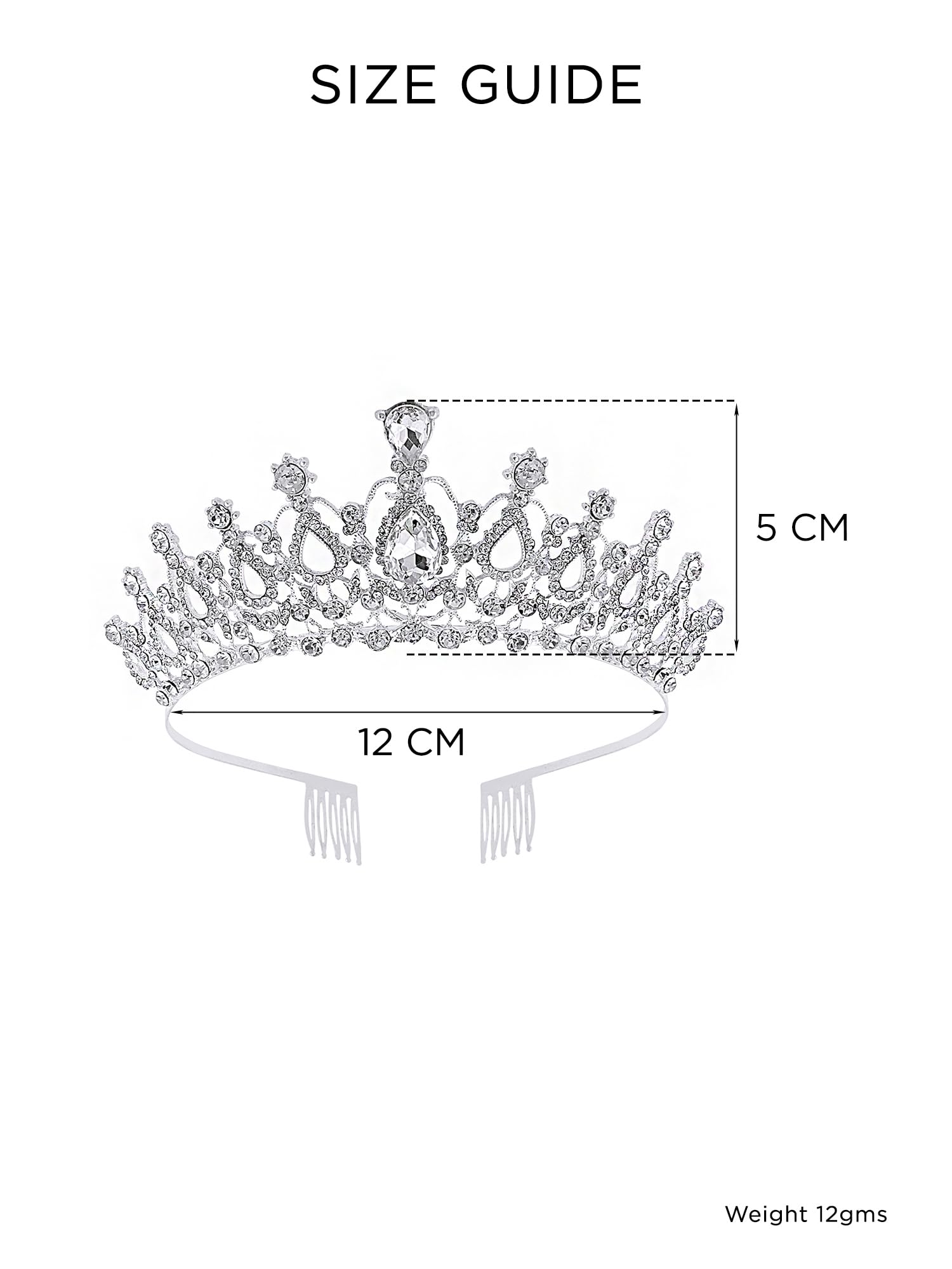 Yellow Chimes Tiara for Women and Girls Silver Crown for Women White Crystal Studded Bridal Wedding Crown Tiaras for Women and Girls Gift For Women & Girls