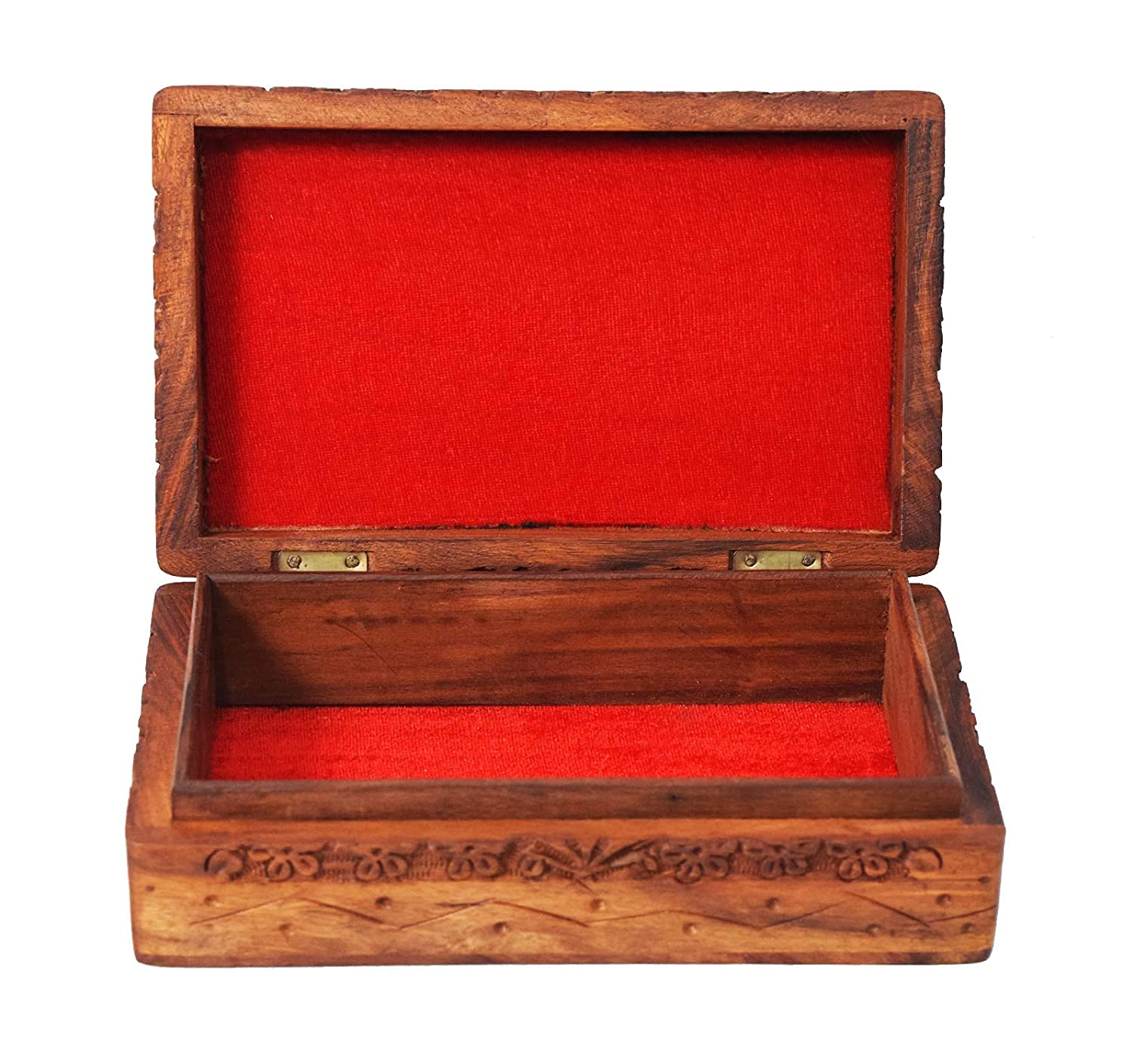 HomeFashionBoxes & HoldersBIJNOR - METAL INLAY IN WOOD Handmade Sheesham Wooden Storage Box Hand Carved Tree design Jewelry Box & Decorative Gift Box etc (7 X 5 Inch)