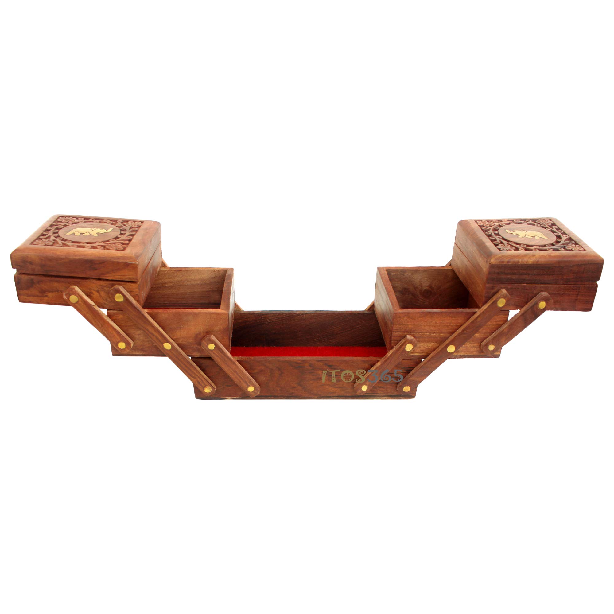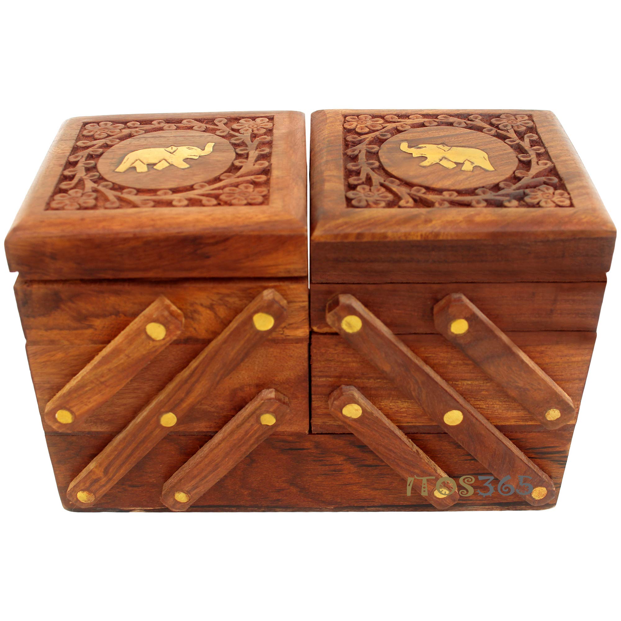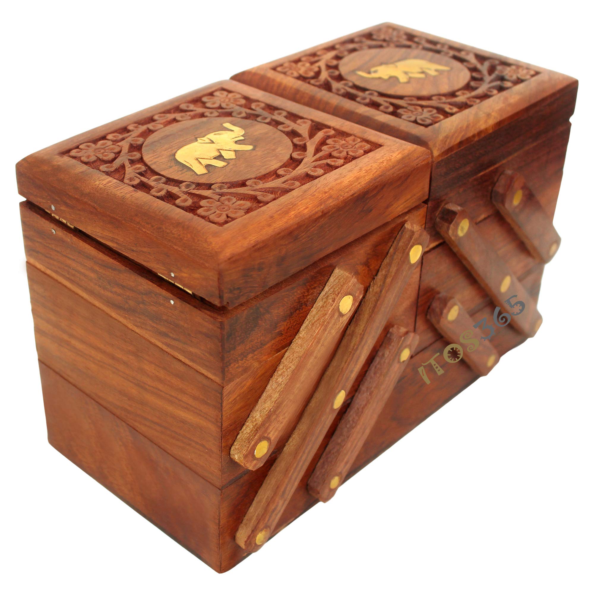 BIJNOR - METAL INLAY IN WOOD Handmade Wooden Jewellery Box for Women Jewel Organizer Hand Carved Carvings Elephant Gift Items