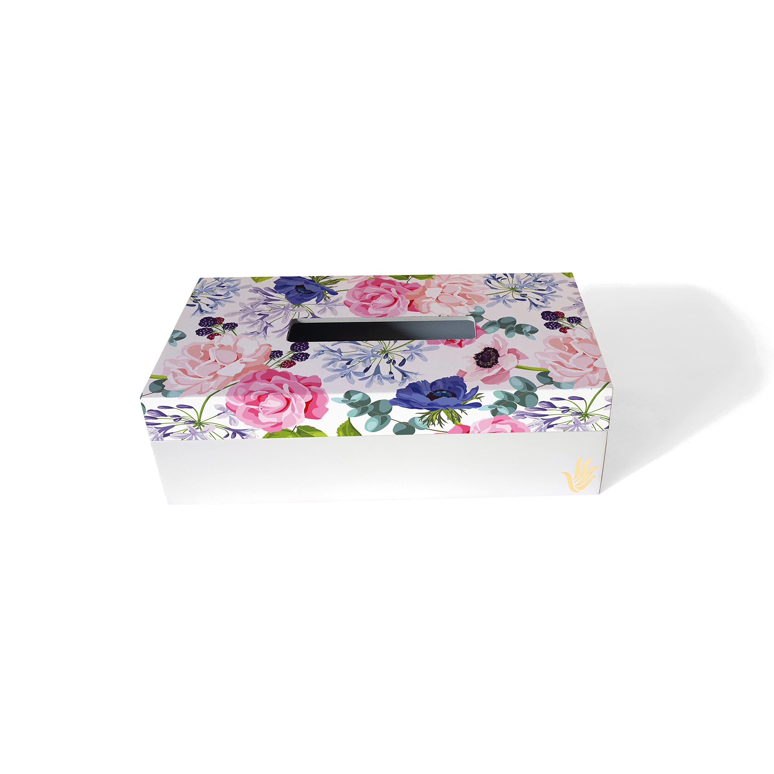 BIJNOR - METAL INLAY IN WOOD Tissue Box Holder | Roses Etc Design with White Border | Size 9" x 5" x 2.75" Tissue Box Holder for Car and Home | Refillable Car Tissue Box Cover