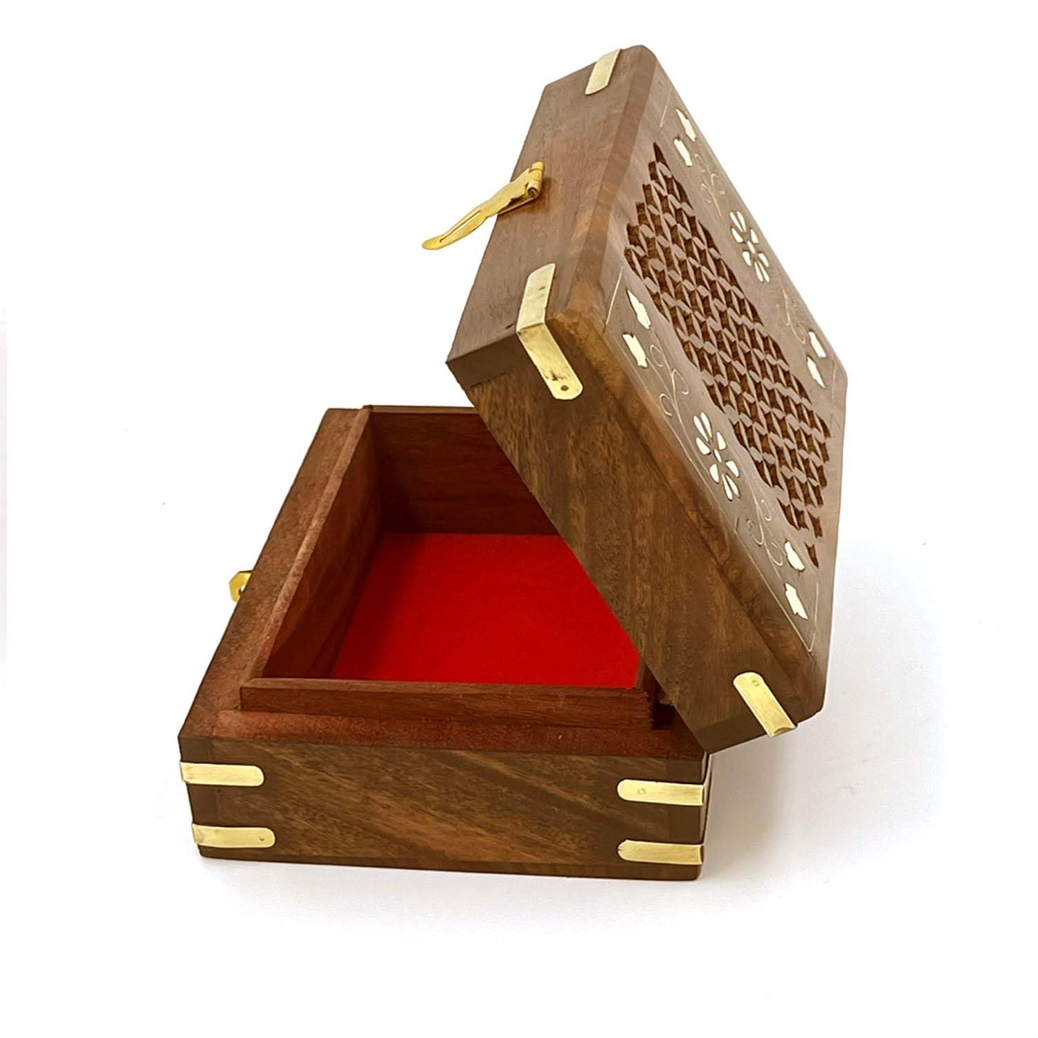 BIJNOR - METAL INLAY IN WOOD Vanity Box with Jali Brass Design 6 X 4 Inches | Handmade Decorative Case Kit | storage boxes | big box | jewellery box organisers | Vanity Organiser for Women jewellery box for girls