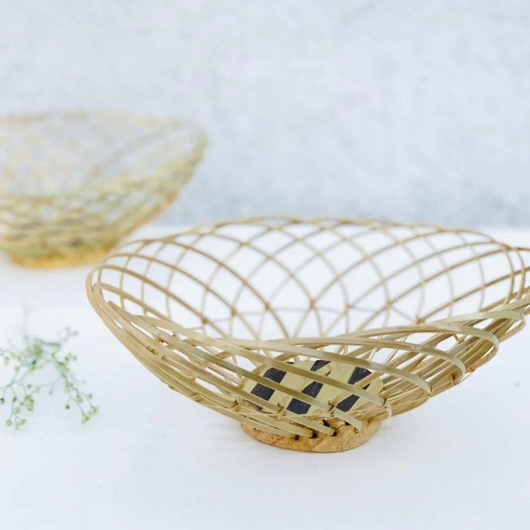 This unique basket is handmade with strong bamboo sticks plugged around a bamboo base. The striped center is a unique process of dying bamboo and then fixing the colour with heat treatment.