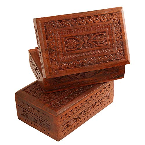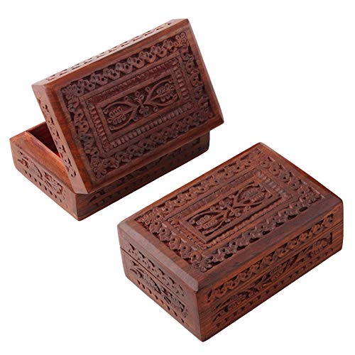 Combo of 2 Wooden Jewellery Jewel Boxes Storage Box Organizer Gift Box for Women Necklace Earring Set Bangles Churi Holder Gift for Men Dimensions: 6 x 4 x 2.5 Inch Weight - 800 GM Product features: Protect and preserve your valuables with this handcrafted wooden jewelry box. You always want to keep your best valuables precious jewelry safely. This wooden jewelry box is perfect for organizing your Jewelry collection. A stylish way to keep your jewelry organized. Other Details: This wooden jewelry box has a curved; traditional design; rich brown finish. Our handmade jewelry boxes make gifts for women and girls that can be treasured for a lifetime.