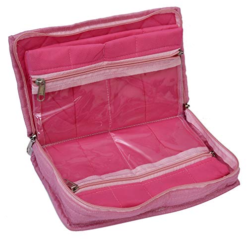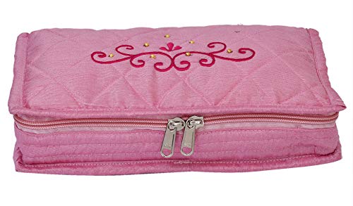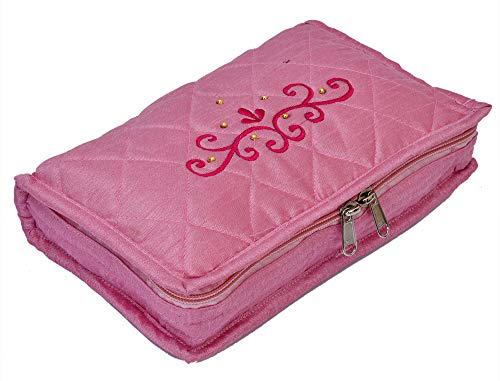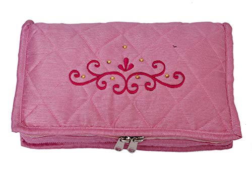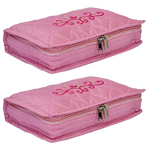 Kuber Industries Embroidery Design 2 Pieces Satin Jewellery Pouch Cum Makeup Kit (Pink)-KUBMART02523