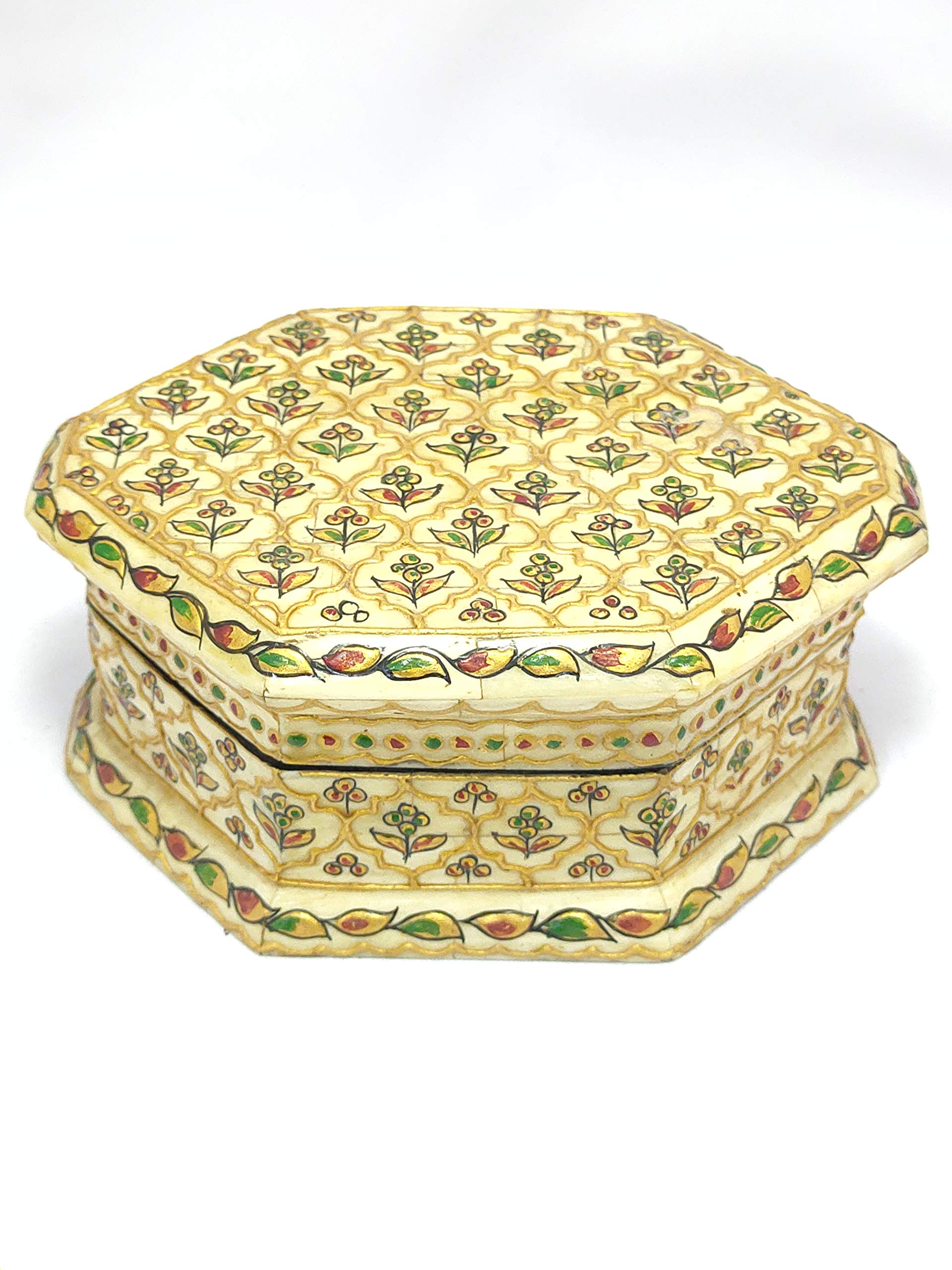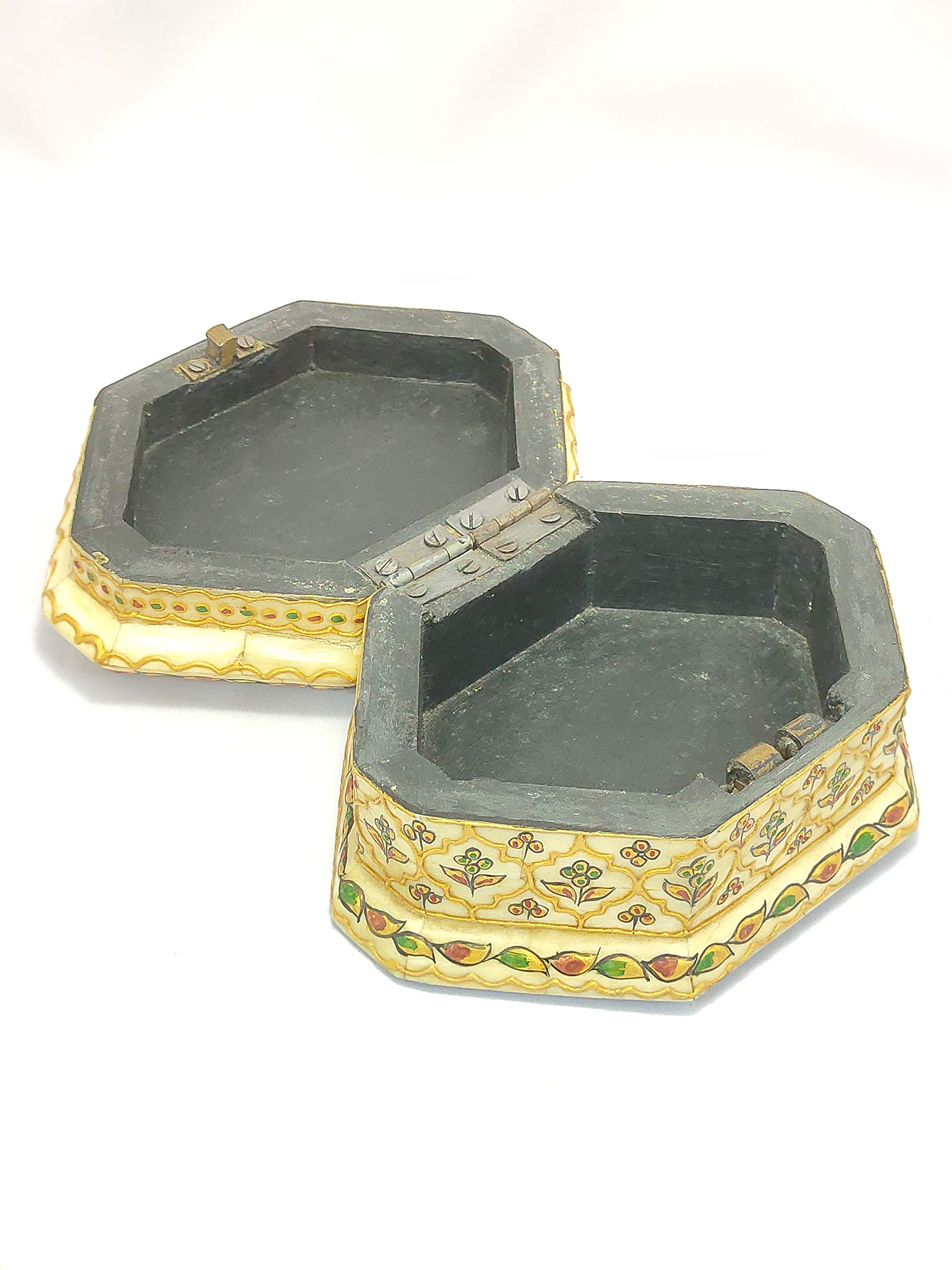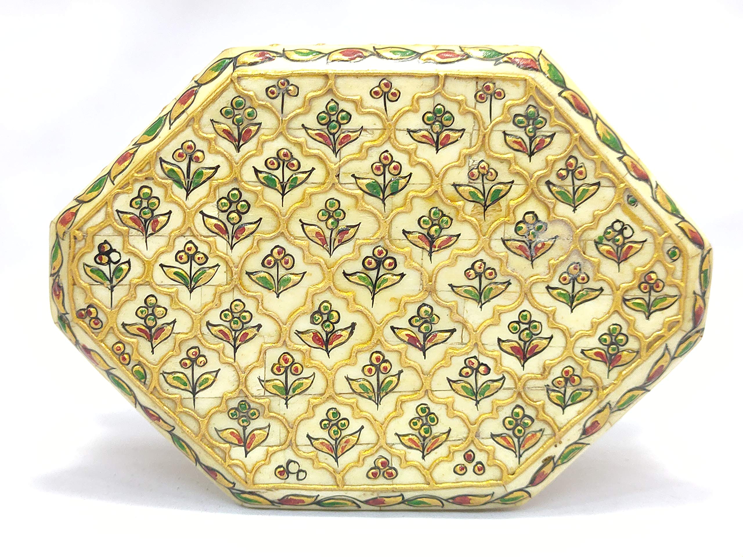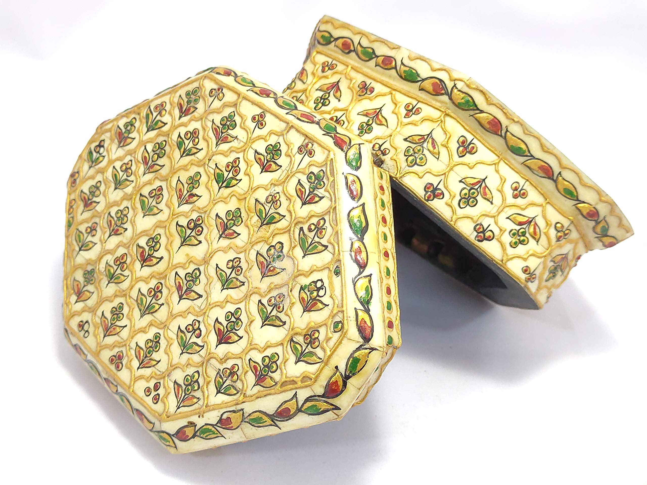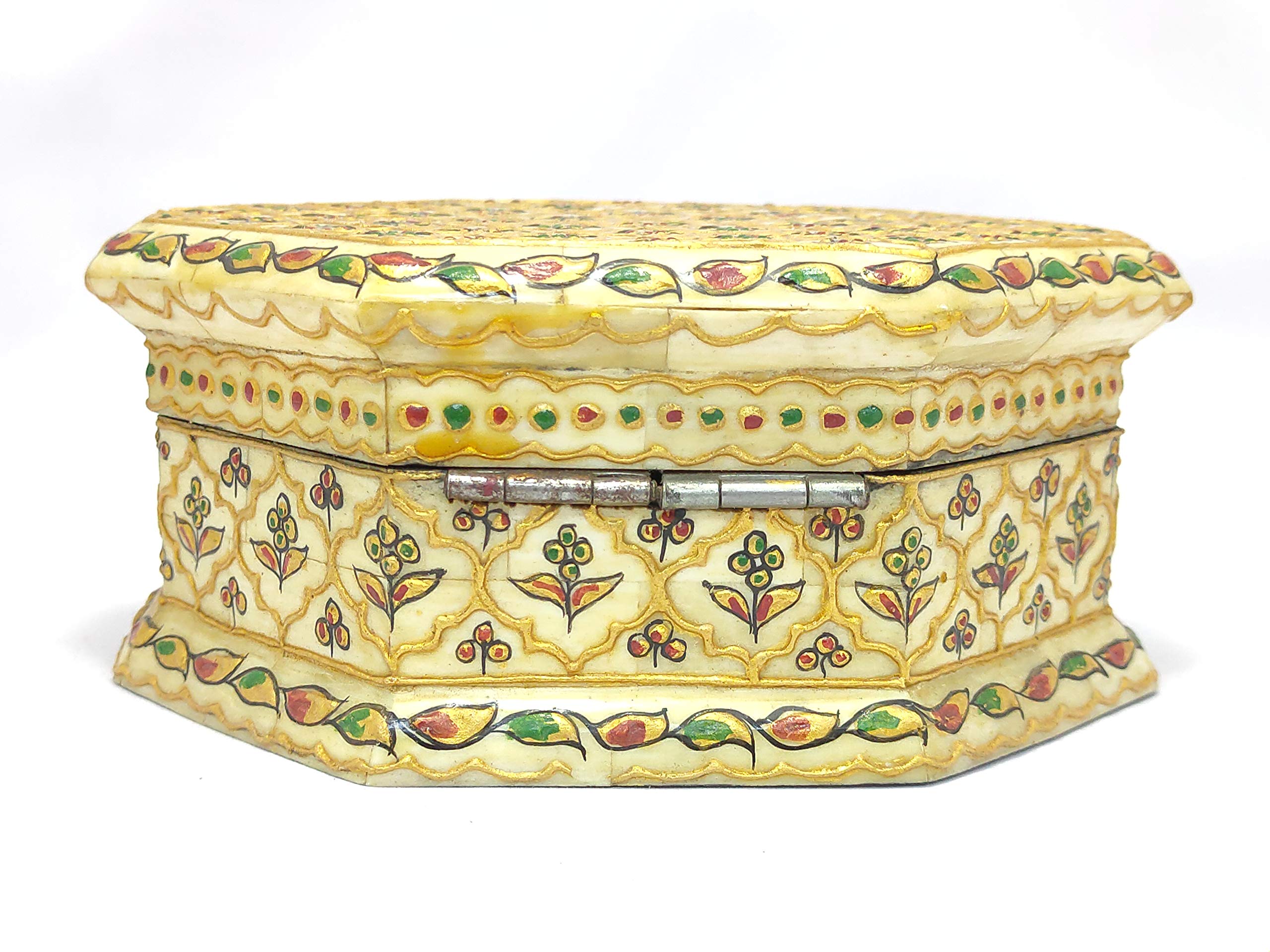 LUCKNOW BONE CARVING PRODUCTS Handmade Trinket Box Hand Painted Natural Camel Bone Chips on Wood Trinket Box