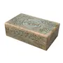 TIBETAN RITUAL CURTAIN Triple Moon Hand Carved Jewelry Trinket Keepsake Wooden Storage Box (Turquoise Large)