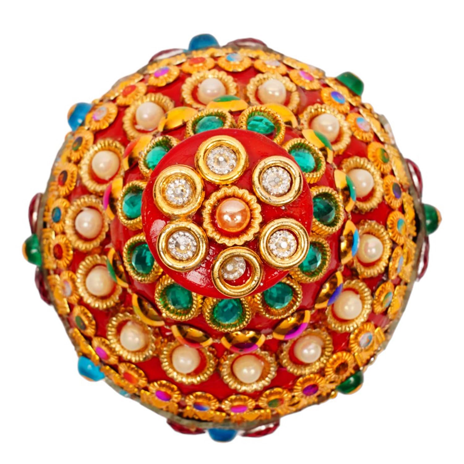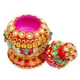 VARANASI WOODEN TOYS Wooden Handmade Round Sindoor Box with Meena Work Refillable Case Multicolour H 4 L 2.7 W 2.5 Inch | Sindoor_Dani025