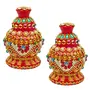VARANASI WOODEN TOYS Wooden Handmade Round Sindoor Box with Meena Work Refillable Case Multicolour H 7 L 4 W 3 Inch | Sindoor_Dani025_2PC