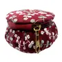 WOOD CARVING WORK Multi-Purpose PIPILI APPLIQUE JEWELLERY BOX: Small Cotton Hand stitched Pipili Applique Storage Box used by women and girls; Useful for Storing Valuables Jewellery Cosmetics etc. and for Gifting Purposes and Home Dcor (multi-coloured; cotton roundish (4.5 Inches in Diameter 2.5 inches in height and 60 Grams)
